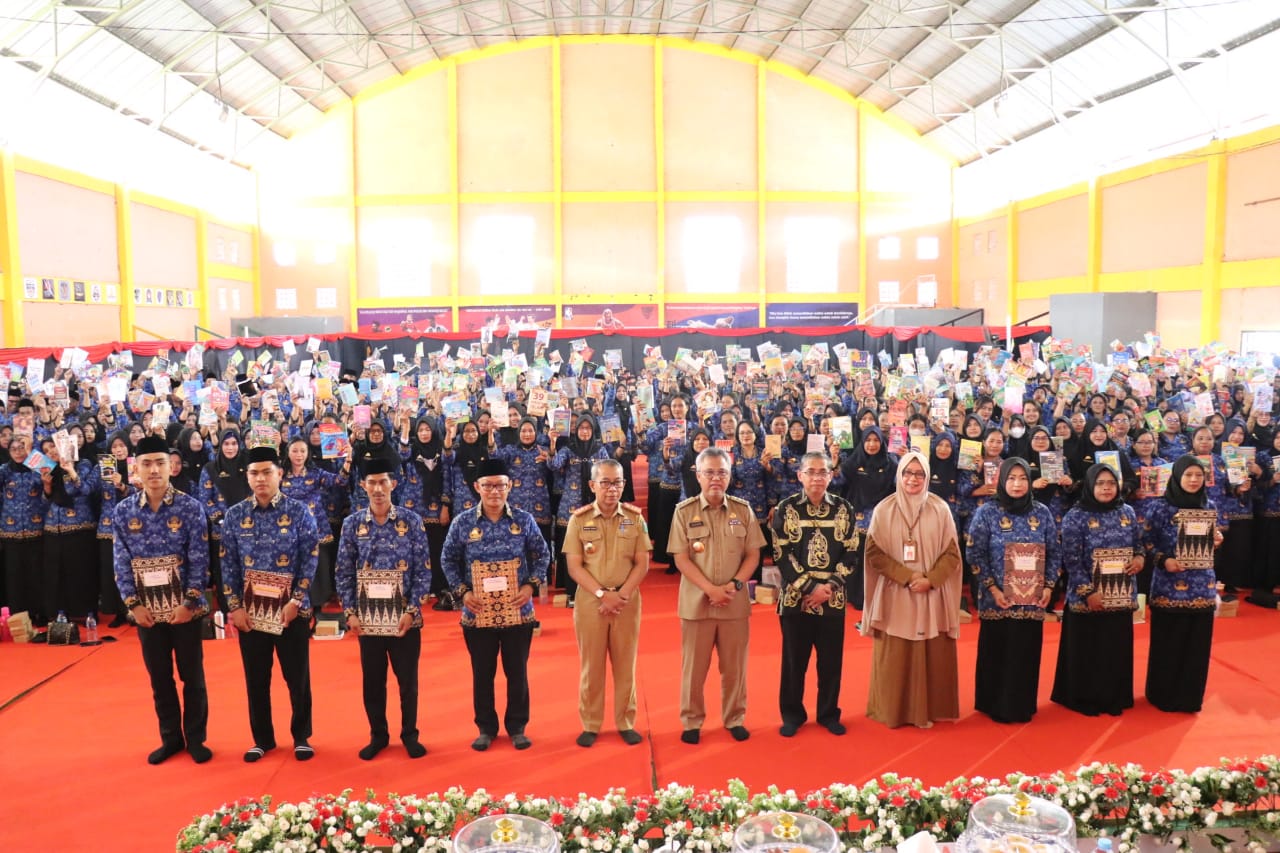 Usai menyerahkan SK, Bupati Luwu Timur, H. Budiman menerima 828 buku dari para PPPK Guru dan Teknis Formasi Tahun 2022.