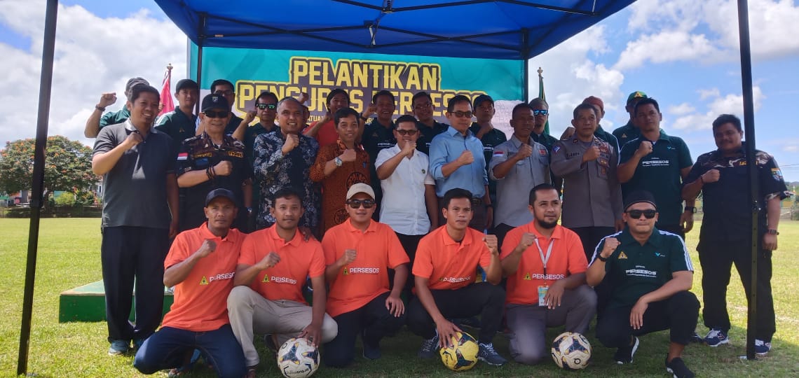 LUWU TIMUR – Staf Ahli Pembangunan, Rapiuddin Tahir mewakili Bupati Luwu Timur melantik Pengurus Persatuan Sepakbola Sorowako dan Sekitarnya (Persesos) Masa Bakti 2023-2028, di Lapangan Persesos, Kecamatan Nuha, Minggu (27/08/2023).