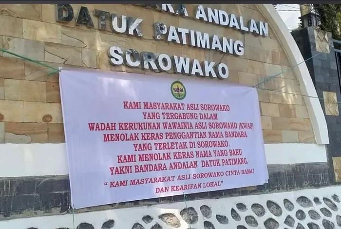 Ketua KWAS, Andi Baso Makmur mengatakan keputusan Gubernur Sulawesi Selatan dalam hal mengganti nama bandara Sorowako menjadi Bandara Nadalan Datuk Sulaiman jelas bentuk Tindakan yang tidak menghormati dan menghargai kearifan lokal masyarakat Sorowako pada khususnya dan Luwu Timur secara lebih luas.