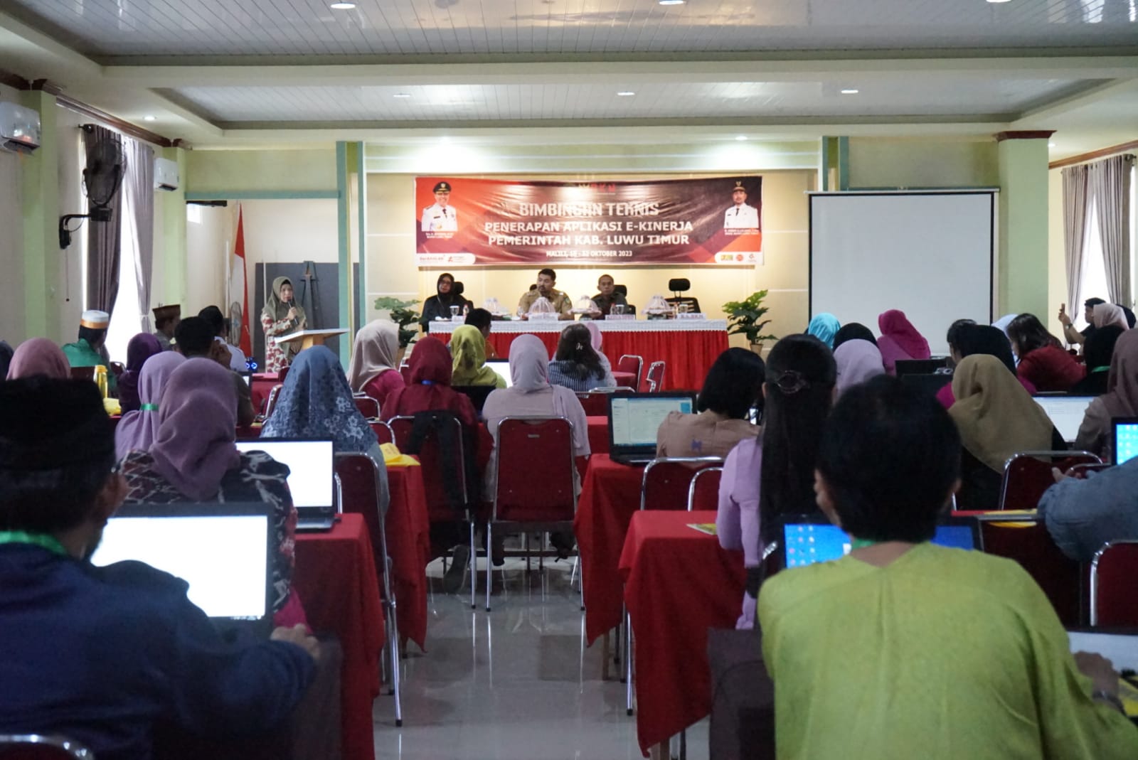 LUWU TIMUR – Pemerintah Kabupaten Luwu Timur melalui Badan Kepegawaian & Pengembangan Sumber Daya Manusia (BKPSDM) menggelar Bimbingan Teknis Penggunaan dan Pemanfaatan Aplikasi E-Kinerja Tahun 2023, di Hotel I Lagaligo Malili, Selasa (10/10/2023).