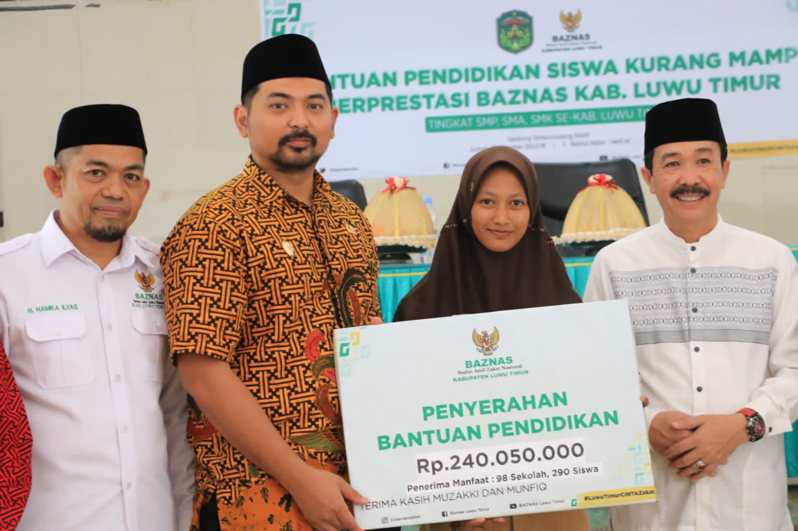 “Program bantuan pendidikan Baznas patut kita apresiasi sebagai upaya sehingga dapat membantu dan mendukung para pelajar di Kabupaten Luwu Timur agar dapat memperoleh pendidikan yang baik,” ujar Wakil Bupati.