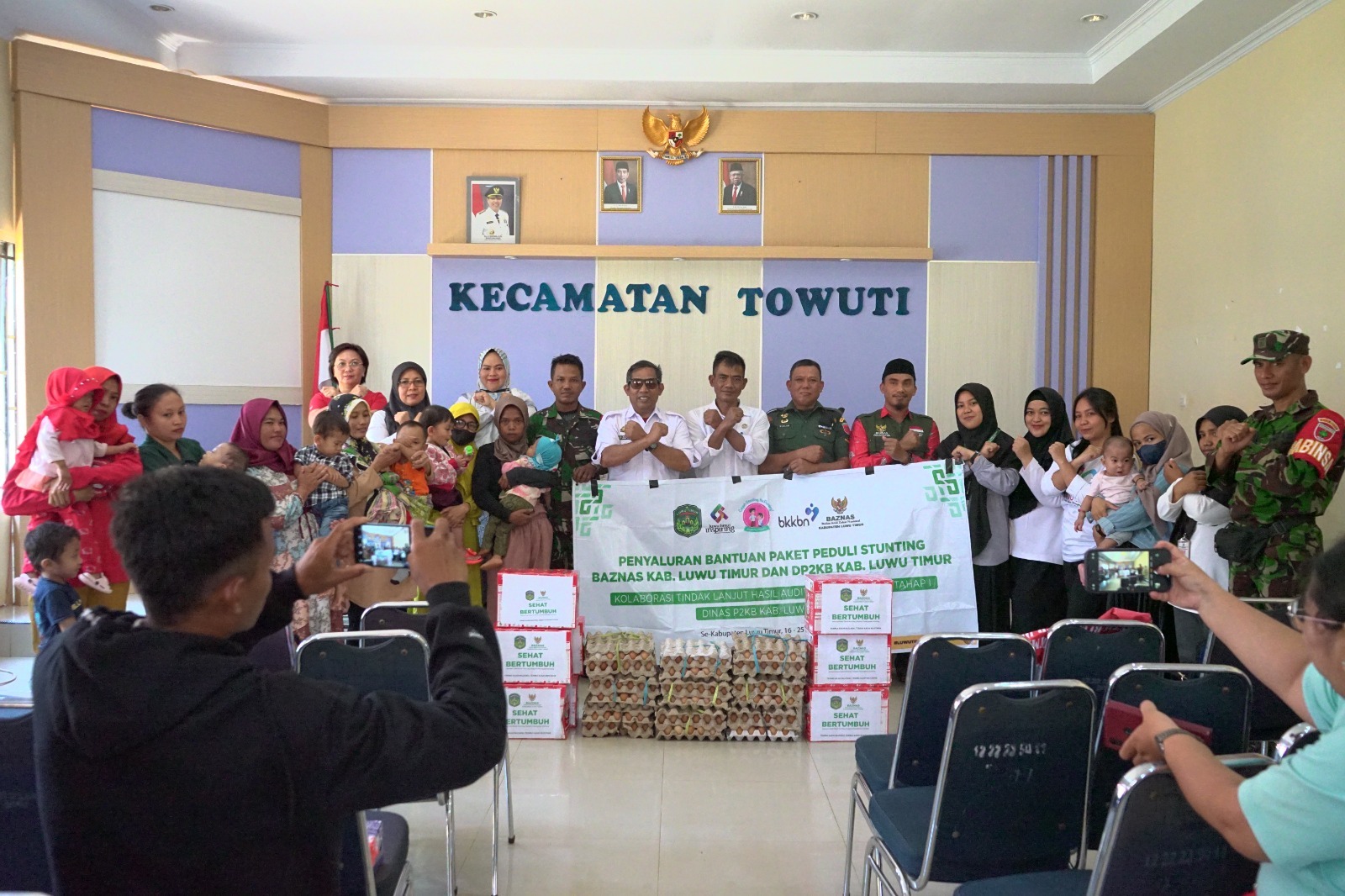 LUWU TIMUR – Dinas Pengendalian Penduduk dan Keluarga Berencana (DP2KB) Kabupaten Luwu Timur bersama Badan Zakat Nasional (Baznas) menyalurkan bantuan untuk anak berkategori stunting tahap I di Kecamatan Towuti, Rabu (25/10/2023).