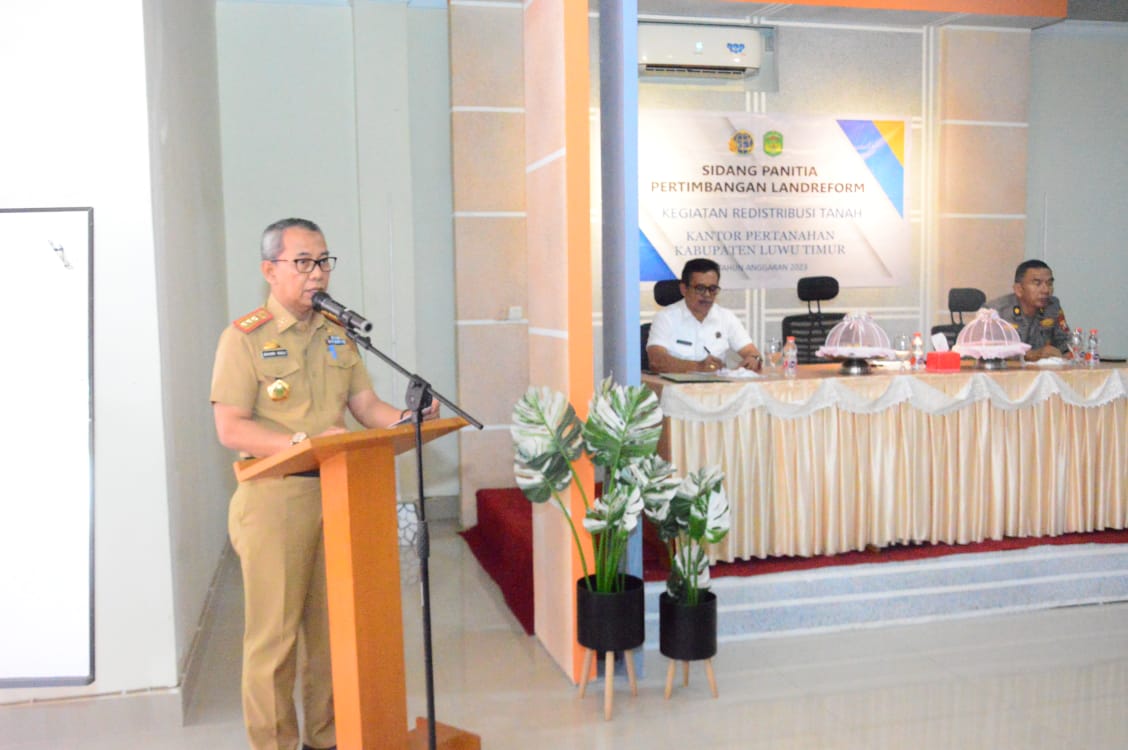 Mewakili Bupati Luwu Timur selaku Ketua PPL Kab. Luwu Timur, Sekretaris Daerah, H. Bahri Suli menyampaikan bahwa, redistribusi tanah merupakan program pembagian tanah negara yang diberikan kepada para warga masyarakat yang telah memenuhi syarat dan bertujuan untuk meningkatkan kesejahteraan sekaligus ikut serta dalam memperkuat sektor pertanian yang inklusif dan berkelanjutan.