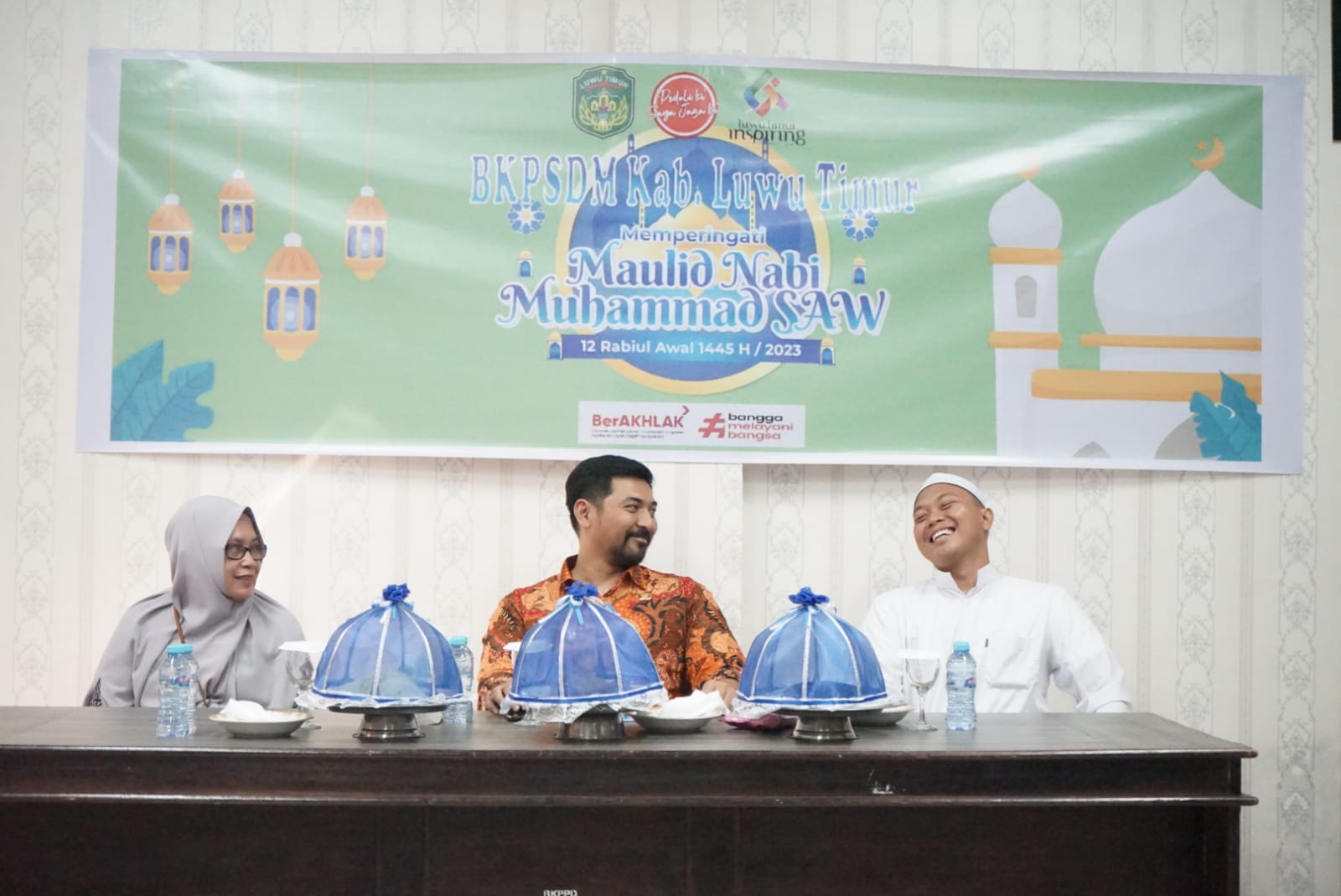 “Mewakili Bapak Bupati Luwu Timur, Saya sangat mengapresiasi atas kegiatan yang dilakukan oleh BKPSDM, walaupun di tengah kesibukan tanggung jawab kantor, tetapi tetap mengingat untuk memperingati maulid Nabi Muhammad SAW,” ungkap Akbar.
