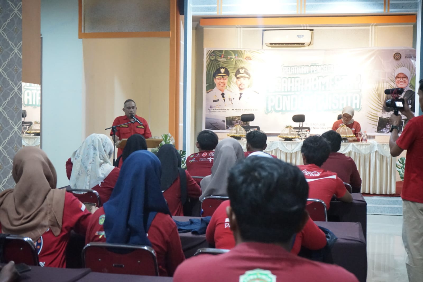 Dalam sambutannya, Masdin menyampaikan tujuan pelatihan Pengelolaan Usaha Homestay/Pondok Wisata ini guna memberikan pengetahuan tentang tata cara mengelola homestay atau pondok wisata sehingga nantinya para pemilik homestay dapat mengelola usahanya dengan baik sehingga memberikan pelayanan maksimal kepada wisatawan.