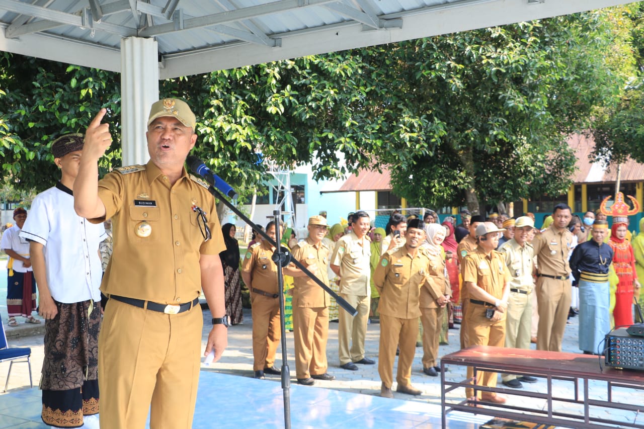 “Kalian semua jangan lupa untuk menjaga adab kepada orang tua di rumah, banggakan mereka dengan memberikan yang terbaik sebagai anak. Tak lupa, selalu menghormati guru yang merupakan orang tua kalian di sekolah, hargai dan hormati mereka,” pesan Bupati menutup sambutannya.