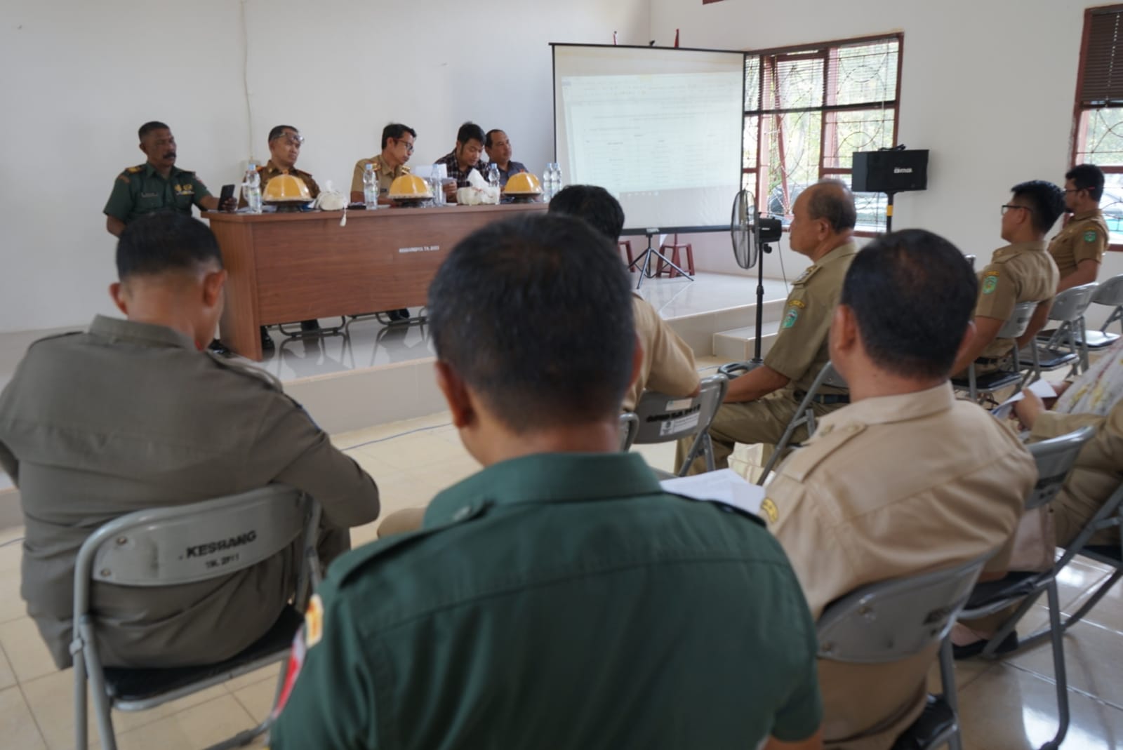 Rapat dipimpin oleh Staf Ahli Hukum dan Pemerintahan, dr. April didampingi Kepala Badan Kesbangpol, Guntur Hafid.