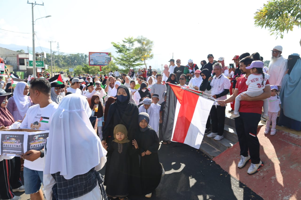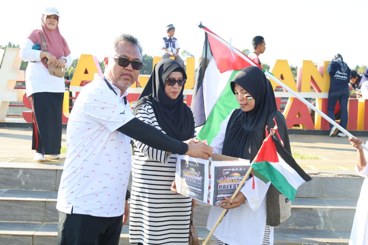LUWU TIMUR – Ratusan masyarakat menggelar Aksi Solidaritas Peduli Palestina (Pawai, Doa Bersama dan Pengumpulan Donasi), di Anjungan Sungai Malili, Minggu (05/11/2023) pagi.