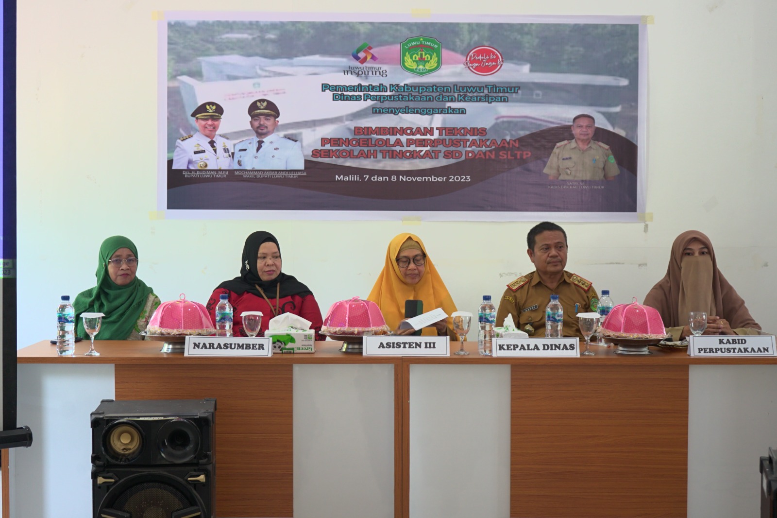 Bimtek dibuka Asisten Administrasi Umum, Nursih Hariani didampingi Kepala DPK Lutim, Satri, Kepala Bidang Perpustakaan, Dinar Husnayaini serta dihadiri para pengelola perpustakaan, para pustakawan, tenaga teknis DPK Lutim, narasumber dari DPK Provinsi Sulawesi Selatan, Siti Aliyah dan Nirma.