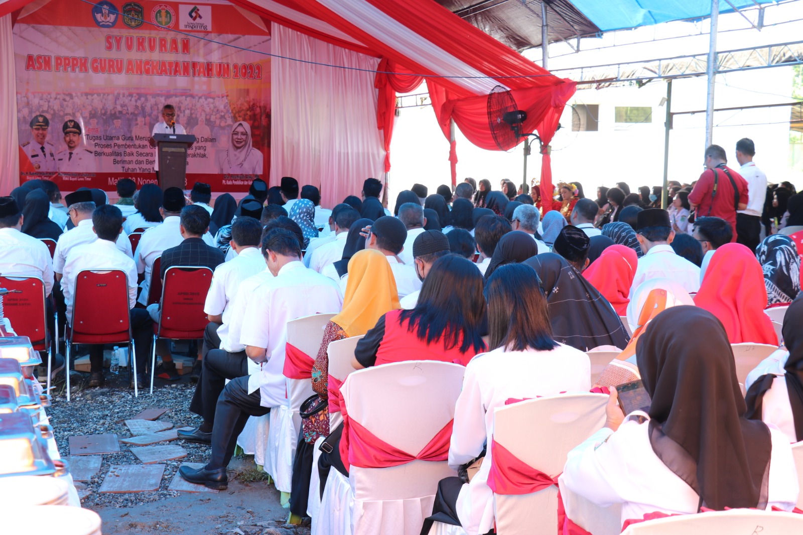 LUWU TIMUR – Bupati Luwu Timur, H. Budiman didampingi Wakil Bupati, Mochammad Akbar Andi Leluasa menghadiri Syukuran ASN Pegawai Pemerintah dengan Perjanjian Kerja (PPPK) Guru Angkatan Tahun 2022
