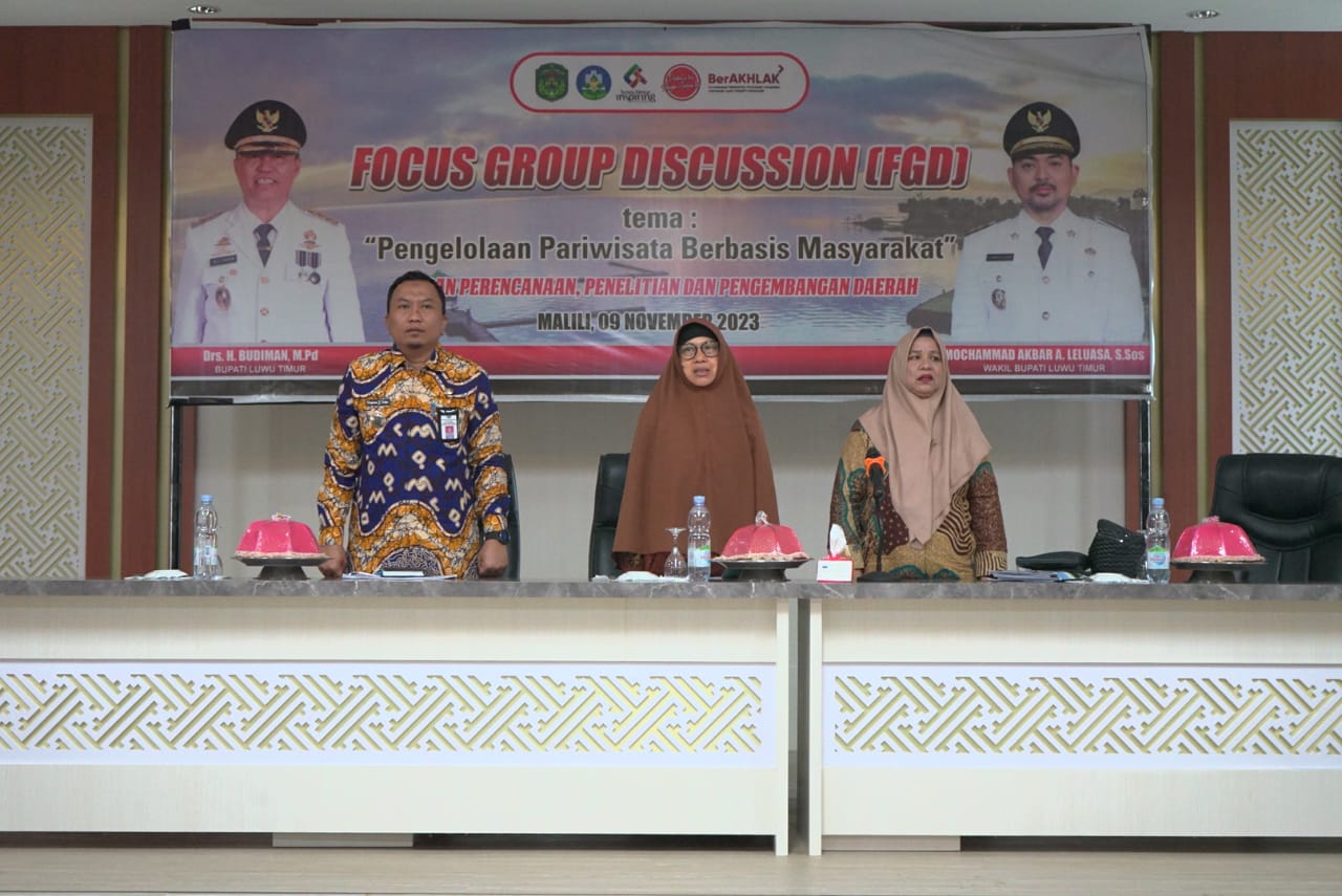 LUWU TIMUR – Pemerintah Kabupaten Luwu Timur, melalui Badan Perencanaan, Penelitian dan Pengembangan Daerah (Bapelitbangda) Luwu Timur menggelar Focus Group Discussion (FGD) sektor pariwisata dengan tema “Pengelolaan Pariwisata Berbasis Masyarakat” yang berlangsung di Aula Sasana Praja Kantor Bupati Lutim, Kamis (09/11/2023).