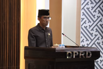 Pada kesempatan ini, Ketua DPRD Lutim, Aripin didaulat untuk membacakan pesan-pesan Perjuangan Pahlawan Nasional.