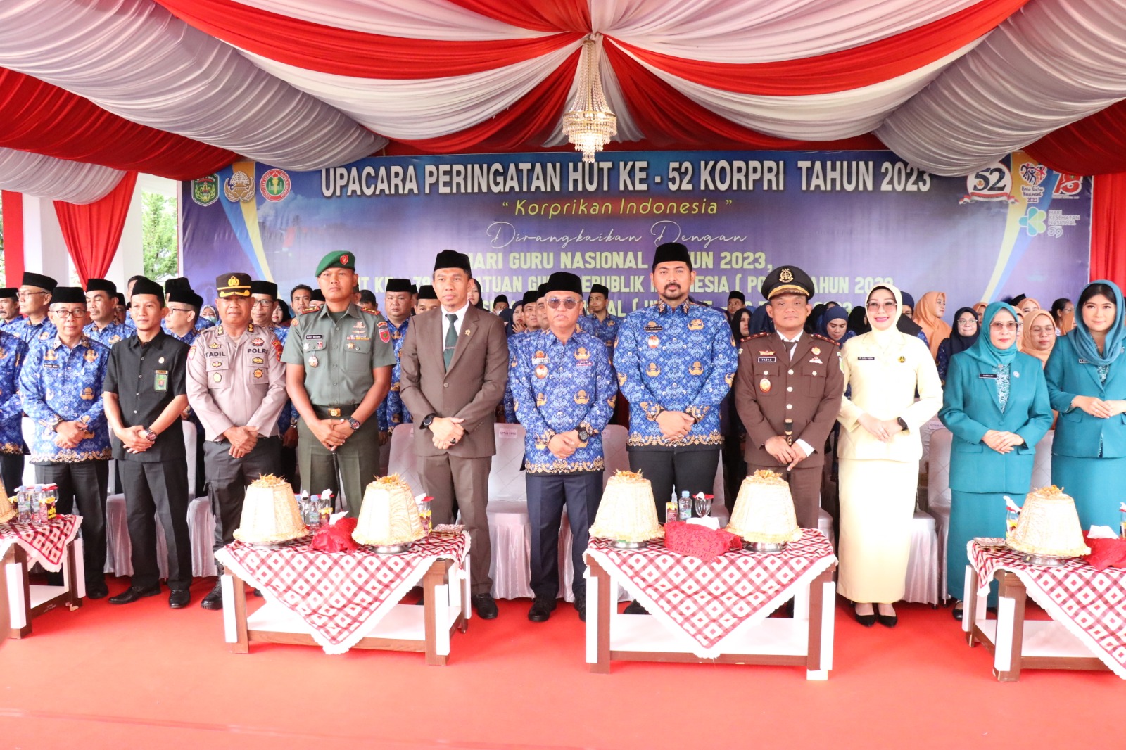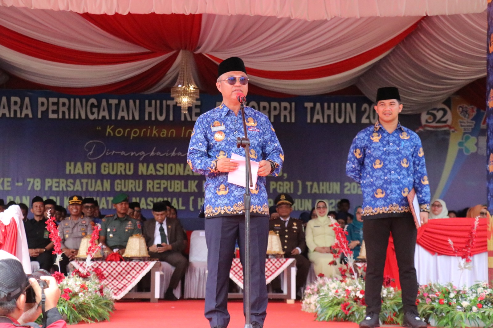 “Selamat Hari Ulang Tahun KORPRI, Selamat Hari Ulang Tahun PGRI, dan Selamat Hari Ulang Tahun Kesehatan, ini kita memperingati momentum-momentum yang baik, kita mengingat-mengingat prestasi kita, dan kita mengingat juga apa yang belum kita lakukan,” tuturnya.