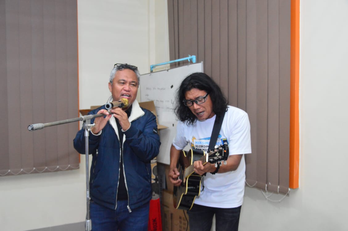 Setelah memberikan sambutannya, Bupati didaulat untuk ikut bernyanyi bersama para peserta musisi yang hadir dan direkam secara langsung (Live).