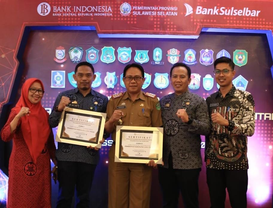 LUWU TIMUR – Pemerintah Kabupaten Luwu Timur (Lutim), melalui Tim Percepatan dan Perluasan Digitalisasi Daerah (TP2DD) Kabupaten Lutim, sukses meraih dua penghargaan Prestasi Ekonomi dan Keuangan Digital Provinsi Sulawesi Selatan Tahun 2023 yang diberikan Bank Indonesia di Sandeq Ballroom, Hotel Claro Makassar, Selasa (5/12/2023).