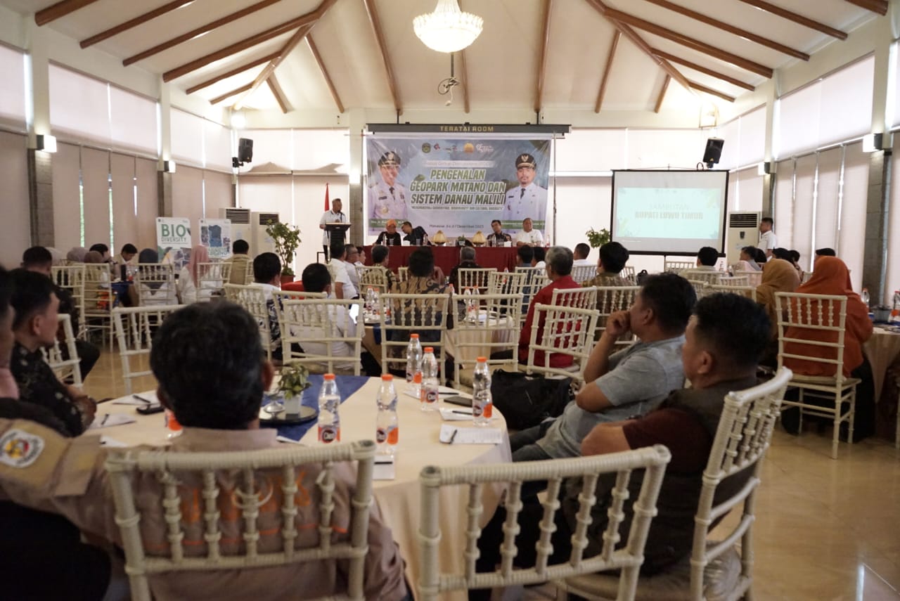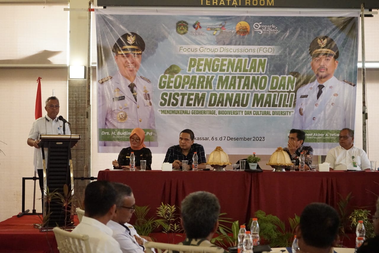 LUWU TIMUR – Bupati Luwu Timur, H. Budiman didampingi Kepala Dinas Pariwisata, Pemuda dan Olahraga, Andi Tabacina Akhmad membuka kegiatan Focus Group Discussions (FGD) Pengenalan Geopark Matano dan Sistem Danau Malili dengan tema “Menemukenali Geoheritage, Biodiversity dan Cultural Diversity” di Hotel Horison Ultima Makassar, Rabu (06/12/2023).