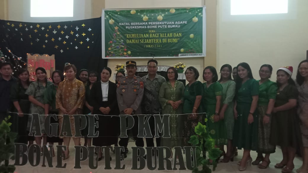 Natal persekutuan Agape tahun 2023 adalah perayaan natal yang ketiga kalinya dilaksanakan oleh gabungan dua puskesmas di Kecamatan Burau ini sejak persekutuan Agape berdiri tiga tahun silam. Dihadiri oleh seluruh tenaga kesehatan dari dua Puskesmas, para keluarga nakes serta gereja sekitar Burau.
