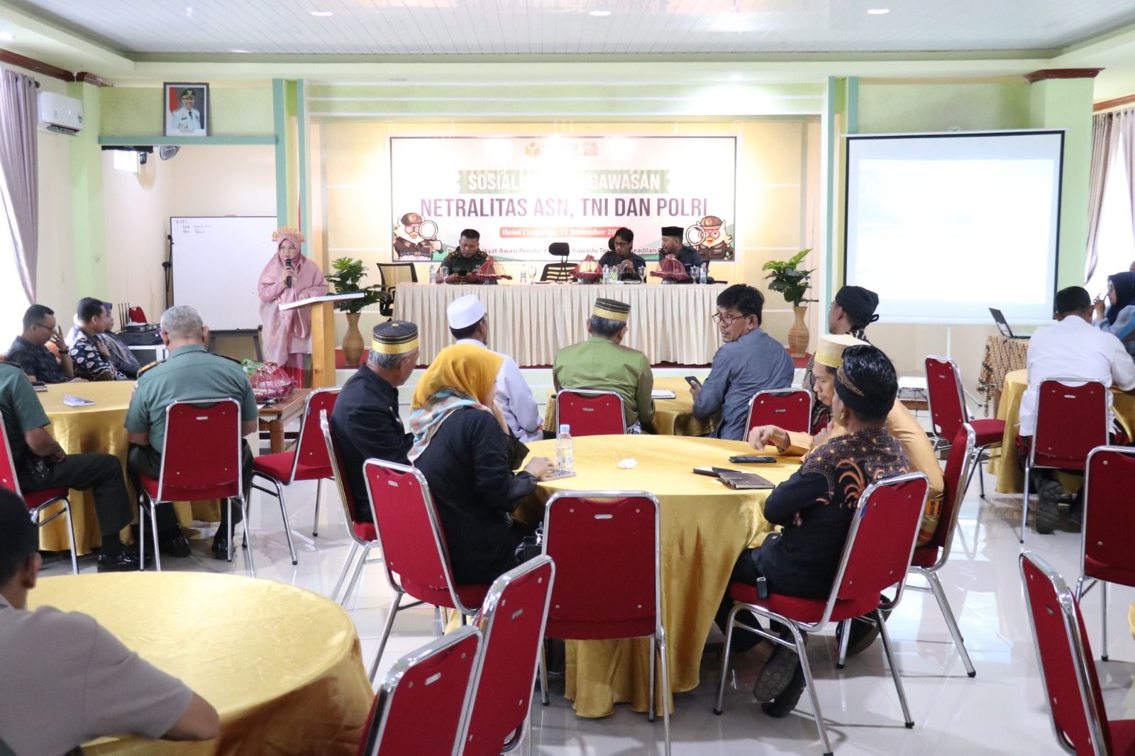 “Sosialisasi tentang Pengawasan Netralitas Aparatur Sipil Negara dan TNI/Polri dalam rangka pelaksanaan Pemilu tahun 2024 yang kita laksanakan hari ini merupakan langkah penting, khususnya untuk menghasilkan penyelenggaraan pemilu yang profesional dan independen,” jelas mantan Asisten Administrasi Umum ini.