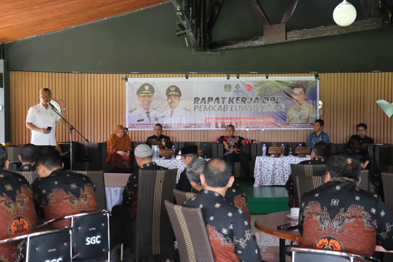 LUWU TIMUR – Bupati Luwu Timur, H. Budiman membuka Rapat Kerja (Raker) Organisasi Perangkat Daerah (OPD) yang berlangsung di Sorowako Golf Club, Kecamatan Nuha, Kamis (14/12/2023).