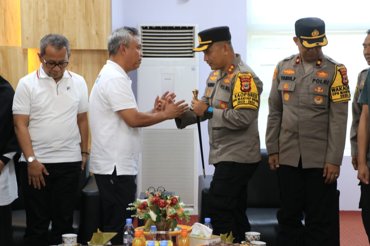 Kedatangan Kapolres Luwu Timur, AKBP Zulkarnain bersama dengan para pejabat utama Polres Luwu Timur disambut oleh Bupati Luwu Timur, H. Budiman di Lounge Kantor Bupati Luwu Timur, Rabu (03/01/2024).