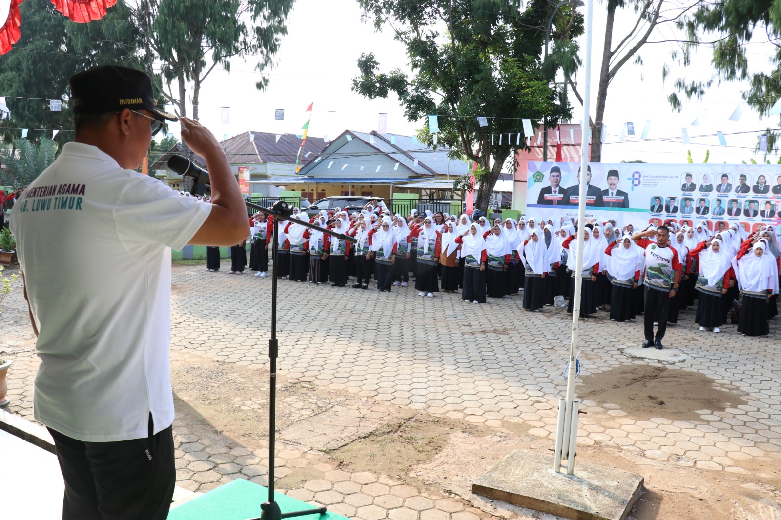 Bupati Luwu Timur, H. Budiman memimpin Apel tersebut sekaligus membacakan sambutan Menteri Agama RI, Yaqut Cholil Qoumas.