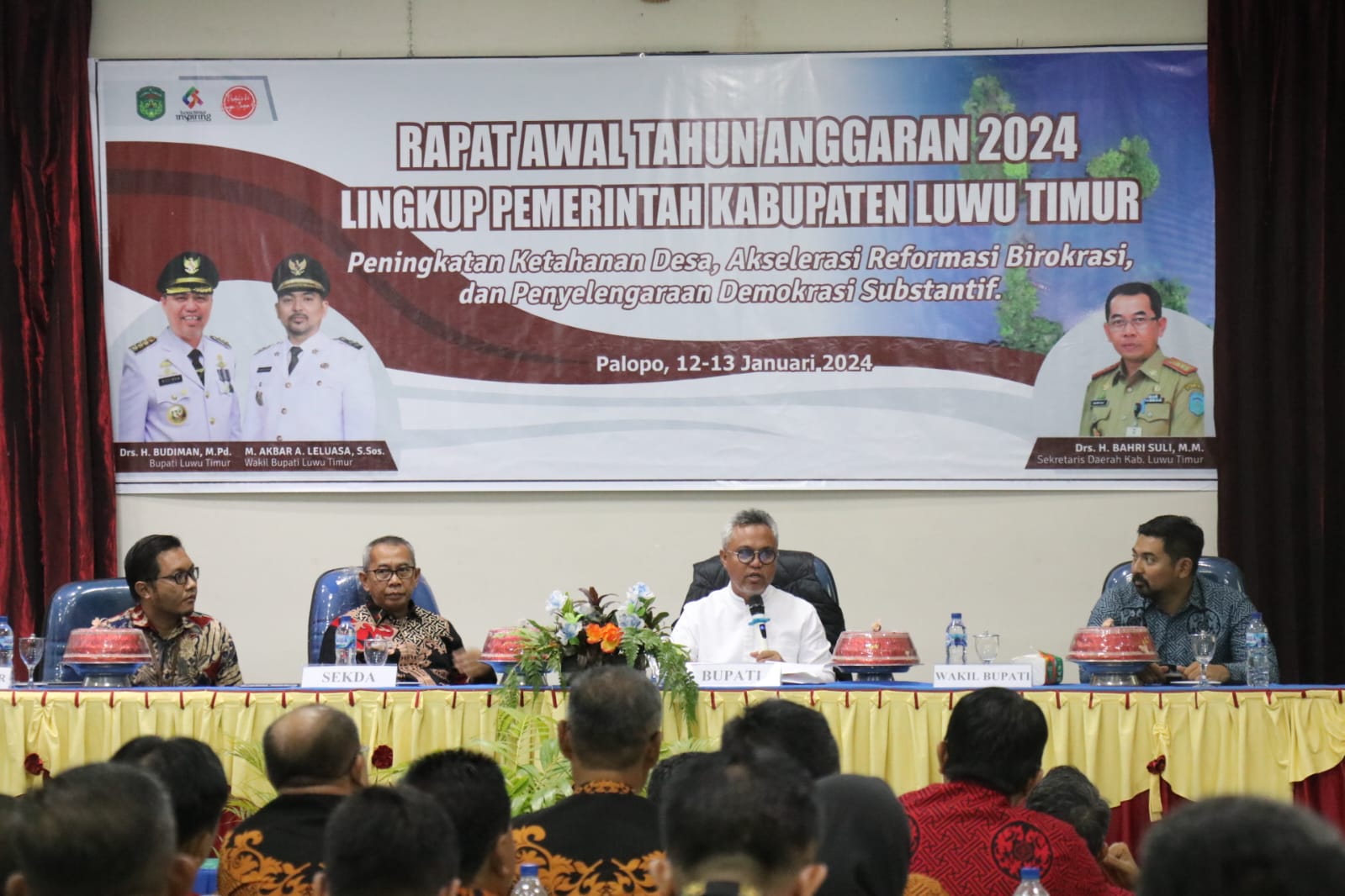 LUWU TIMUR – Bupati Luwu Timur, H. Budiman memimpin rapat awal tahun anggaran 2024 lingkup Pemerintah Kabupaten Luwu Timur untuk membahas rencana dan program kerja daerah dalam periode tersebut, Jumat (12/01/2024).
