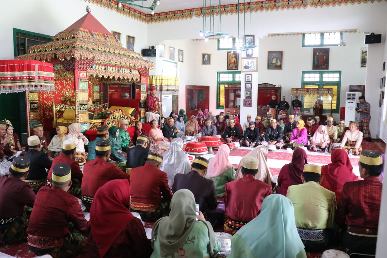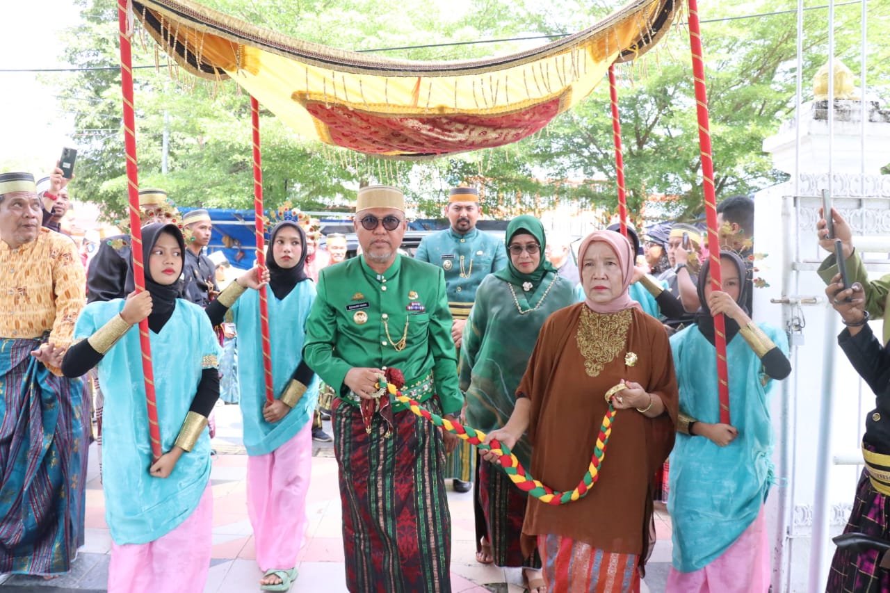 LUWU TIMUR – Bupati Luwu Timur, H. Budiman didampingi Ketua TP PKK Lutim, Hj. Sufriaty, Wakil Bupati, Moch. Akbar A. Leluasa, Sekda H. Bahri Suli beserta jajaran melakukan prosesi “Mangngolo” atau mengunjungi Istana Langkanae Kedatuan Luwu, Sabtu (13/01/2024).