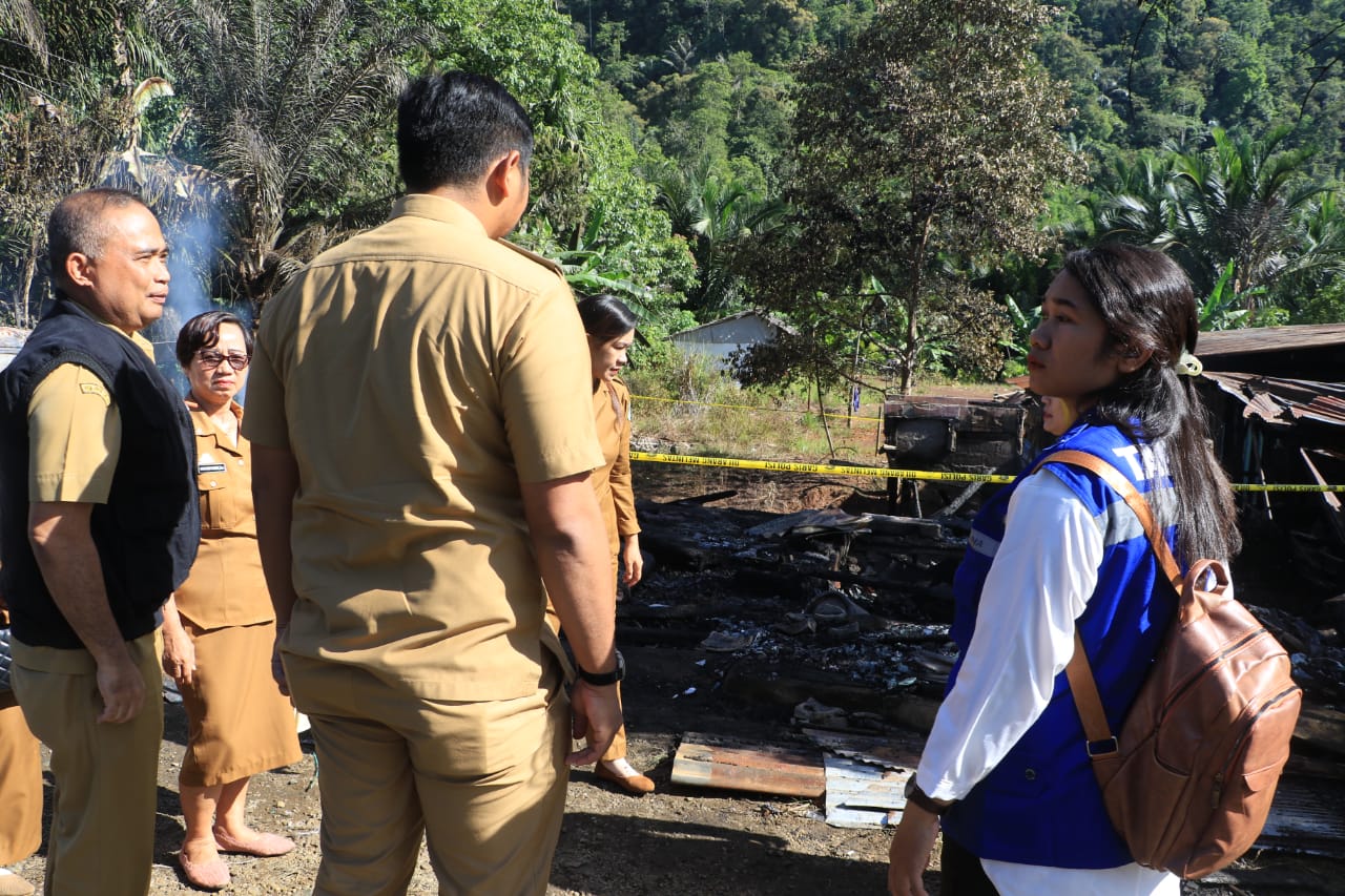 LUWU TIMUR – Wakil Bupati (Wabup) Luwu Timur, Mochammad Akbar Andi Leluasa meninjau lokasi kebakaran dua rumah warga di Desa Asuli, Kecamatan Towuti, Senin (22/01/24).