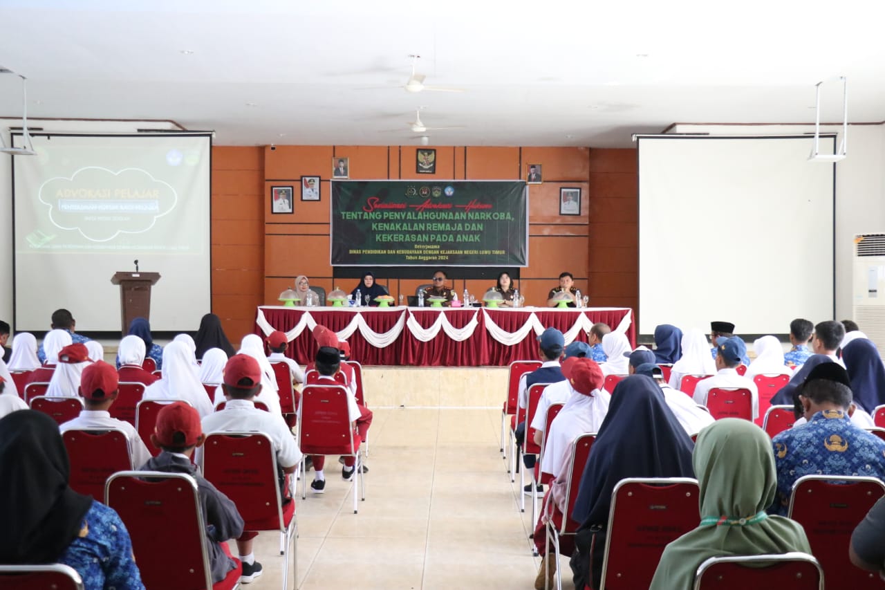 LUWU TIMUR – Pemerintah Kabupaten Luwu Timur melalui Dinas Pendidikan dan Kebudayaan (Dikbud) menggelar Sosialisasi Advokasi Dampak Penyalagunaan Narkoba dan Kenakalan Remaja Jenjang SD dan SMP se-Lutim di Aula Dinas Dikbud, Senin (19/02/2024).