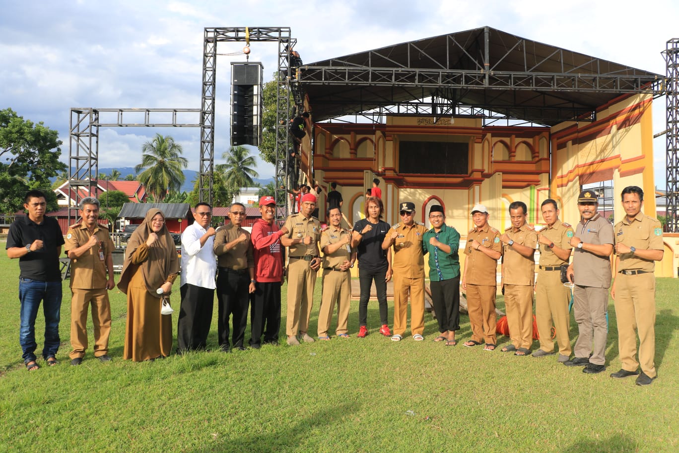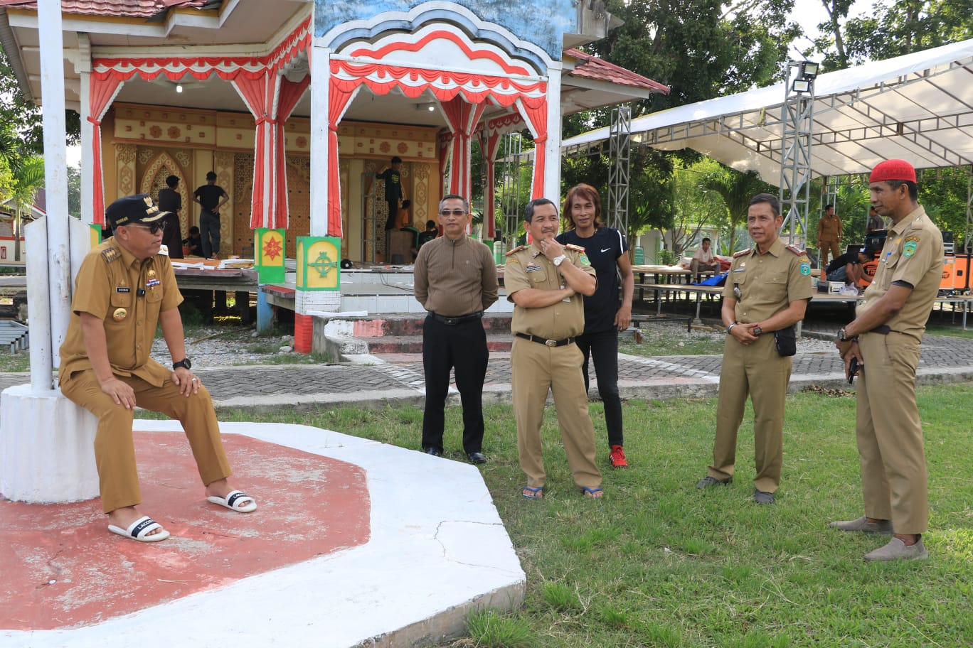 Dilokasi tersebut, Bupati yang didampingi sejumlah kepala OPD melihat langsung proses pembenahan panggung dan tribun utama. Meskipun masih dalam proses, namun persiapan tersebut terlihat telah mencapai tahap yang memadai untuk menyambut acara besar tersebut.
