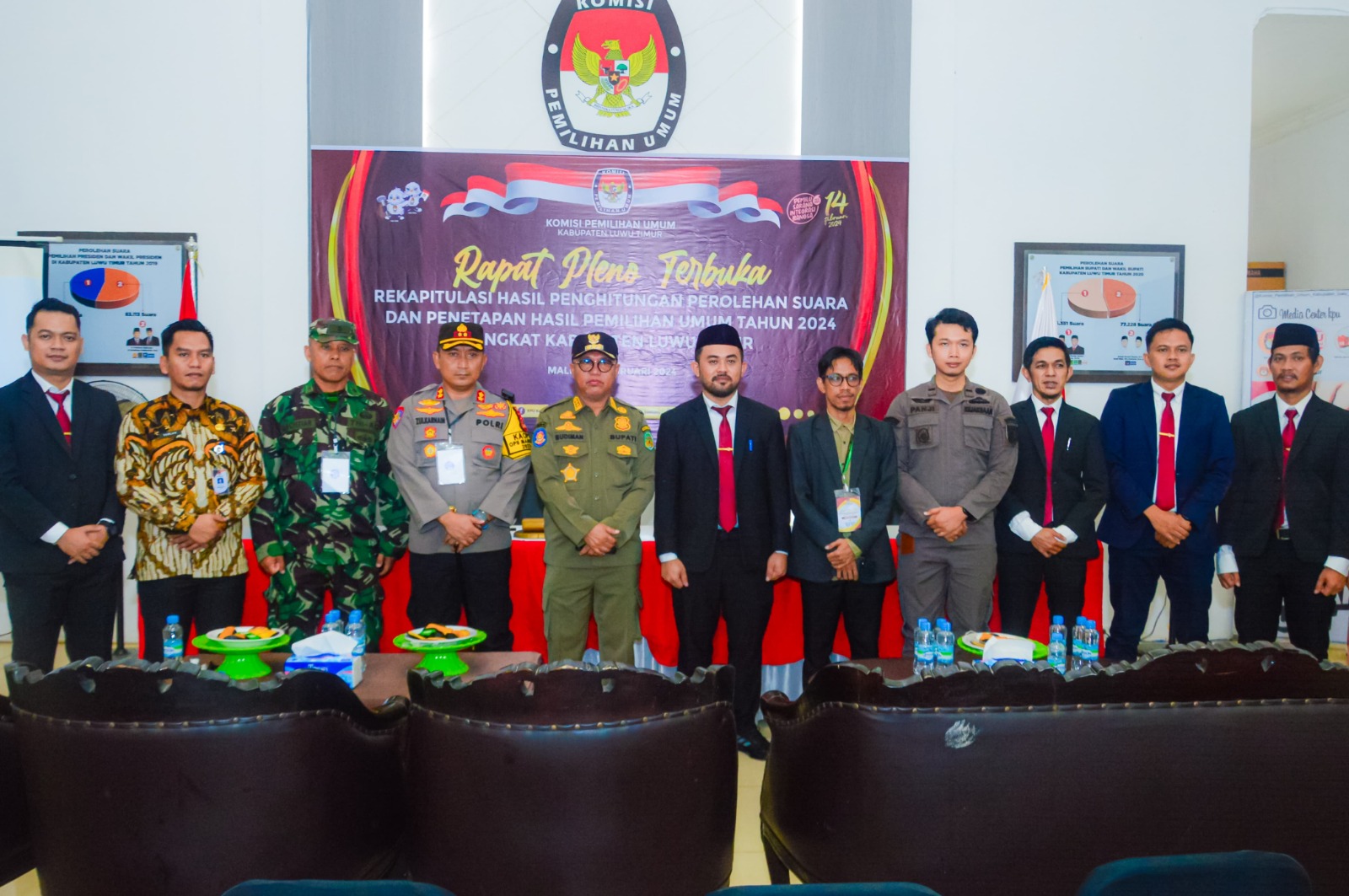 LUWU TIMUR – Bupati Luwu Timur, H. Budiman menghadiri Rapat Pleno Terbuka Penghitungan Hasil Perolehan Suara dan Penetapan Hasil Pemilu Tahun 2024, di Kantor KPU Kab. Luwu Timur, Kamis (29/02/2024).
