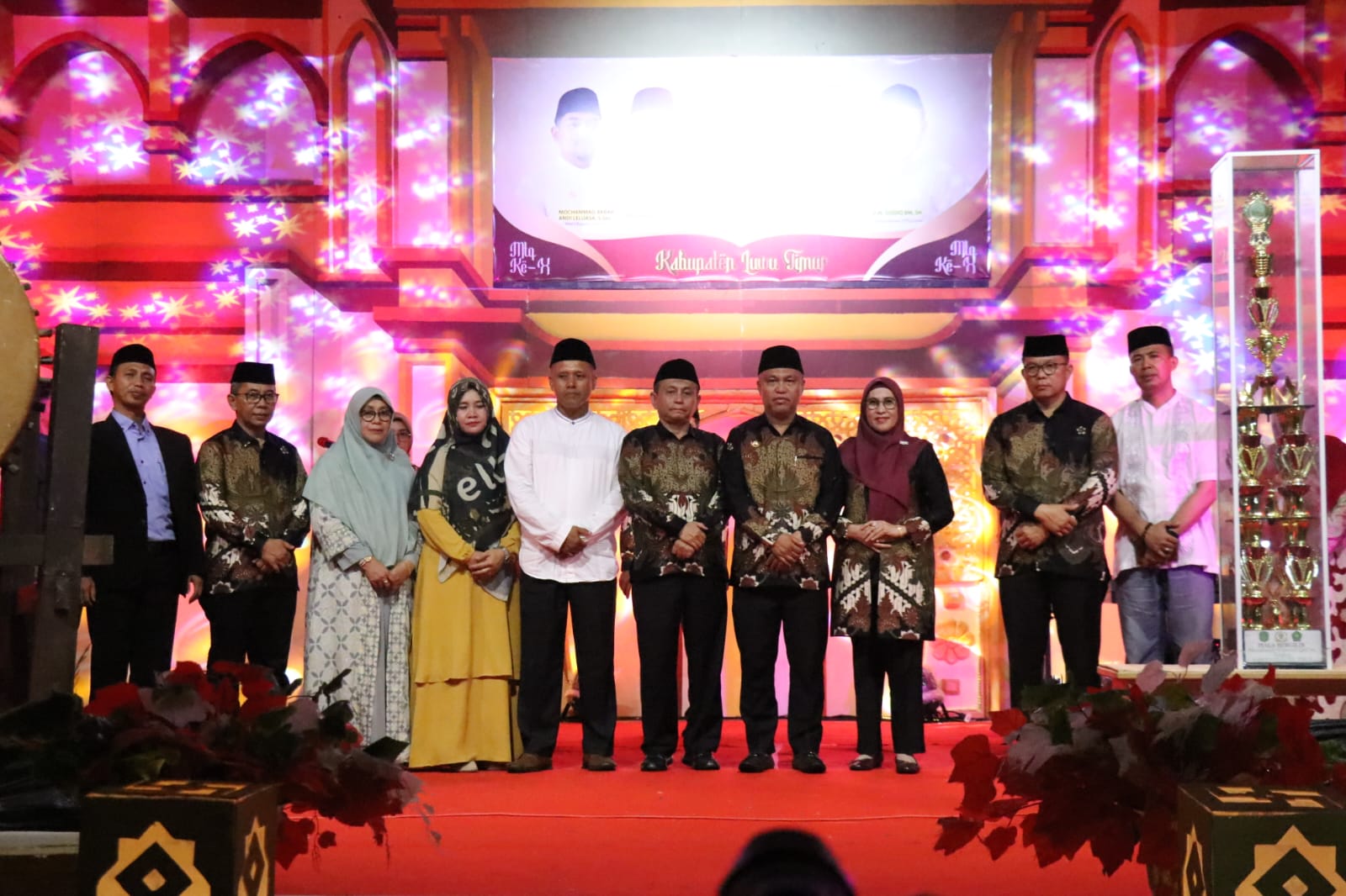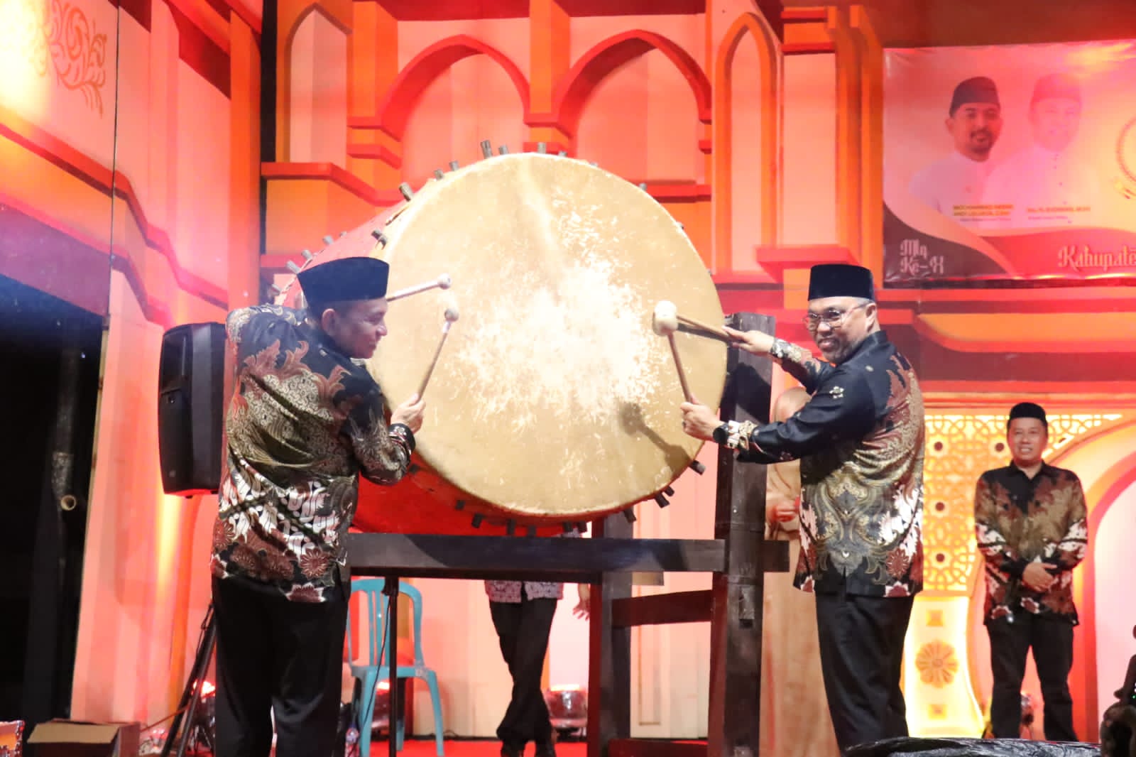 LUWU TIMUR – Pemukulan Bedug dan penyerahan piala bergilir oleh Bupati Luwu Timur, H. Budiman kepada Ketua Panitia MTQ, H.M. Siddiq, BM. menandai dimulainya penyelengaraan Musabaqah Tilawatil Quran (MTQ) ke X Tingkat Kabupaten Luwu Timur Tahun 2024, Jum’at malam (01/03/24).