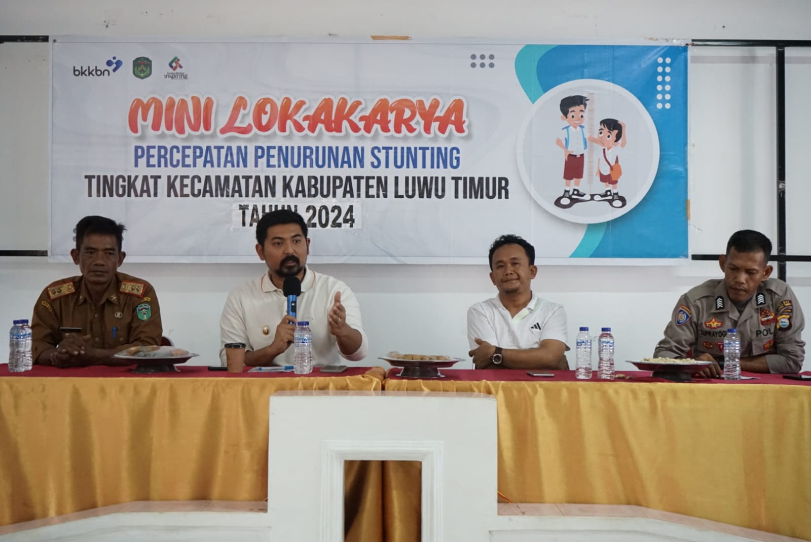 LUWU TIMUR – Wakil Bupati Luwu Timur, Mochammad Akbar Andi Leluasa selaku Ketua Tim Percepatan Penurunan Stunting (TPPS) Lutim memimpin Rapat Koordinasi Mini Lokakarya Percepatan Penurunan Stunting Tingkat Kecamatan Tahun 2024, di Aula Kantor Camat Malili, Selasa (05/03/2024).
