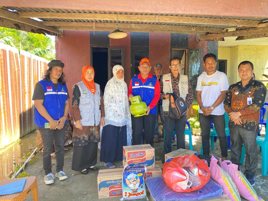 “Adapun bantuan yang diserahkan berupa alat masak seperti kompor gas satu paket dan bahan makanan berupa beras, Indomie, gula kopi dan air mineral yang berasal dari BPBD beserta alat kelengkapan sekolah berupa tas,” ungkapnya.