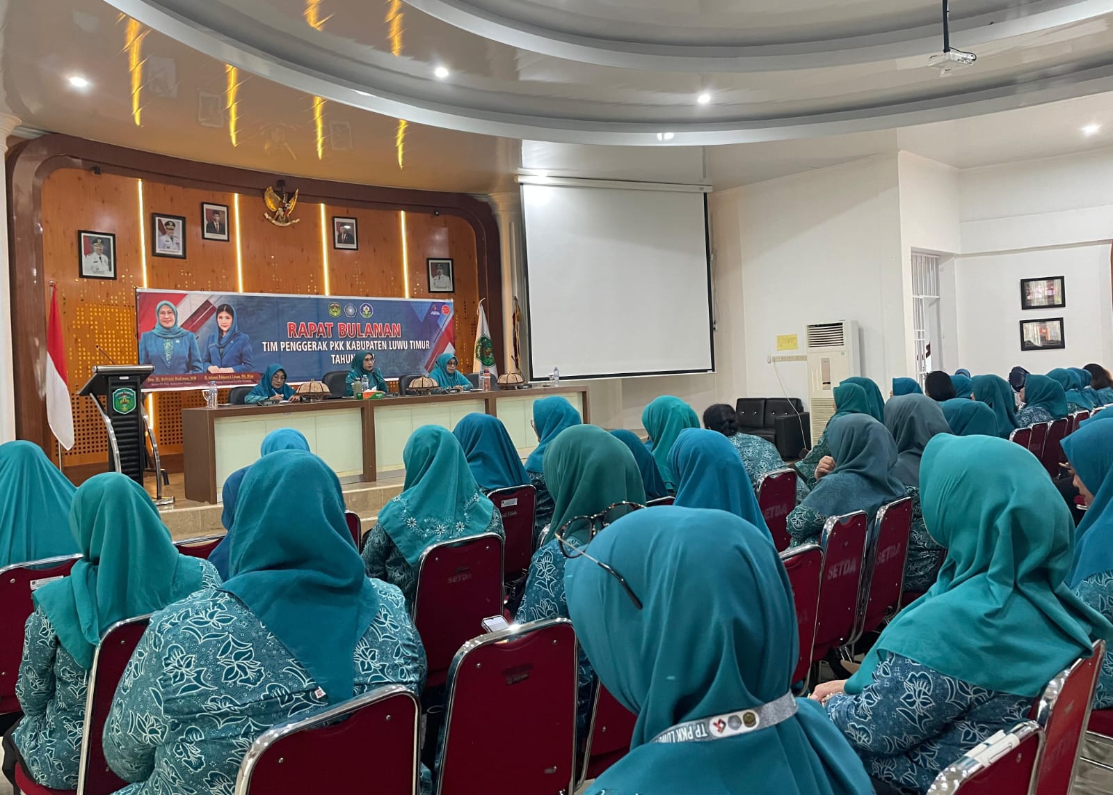 LUWU TIMUR – Ketua TP PKK Kabupaten Luwu Timur (Lutim), Hj. Sufriaty didampingi Staf Ahli TP PKK, Haslinda Doh’ri, Ketua Bidang IV Kesehatan Lingkungan Hidup, Hj. Masrah Bahri Suli memimpin Rapat Bulanan TP PKK Kabupaten Lutim Tahun 2024, di Aula Rumah Jabatan Bupati, Rabu (06/03/2024).