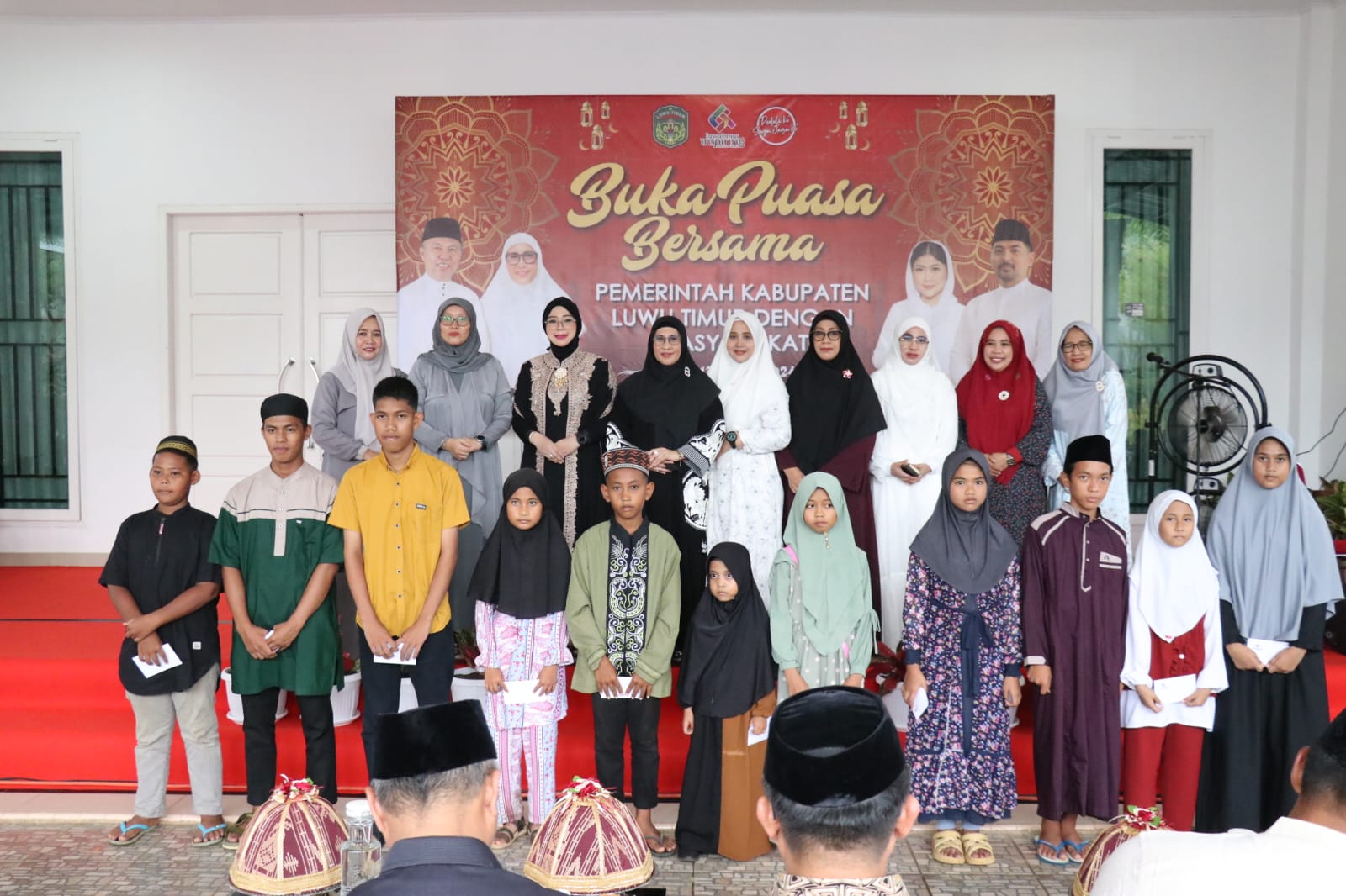 Penyerahan santunan kepada ratusan anak Yatim dari 11 kecamatan se-Lutim tersebut dilakukan pada acara Buka Puasa Bersama Pemerintah dan Masyarakat Kabupaten Luwu Timur, di Halaman Rumah Jabatan Bupati Lutim, Rabu (13/03/2024).
