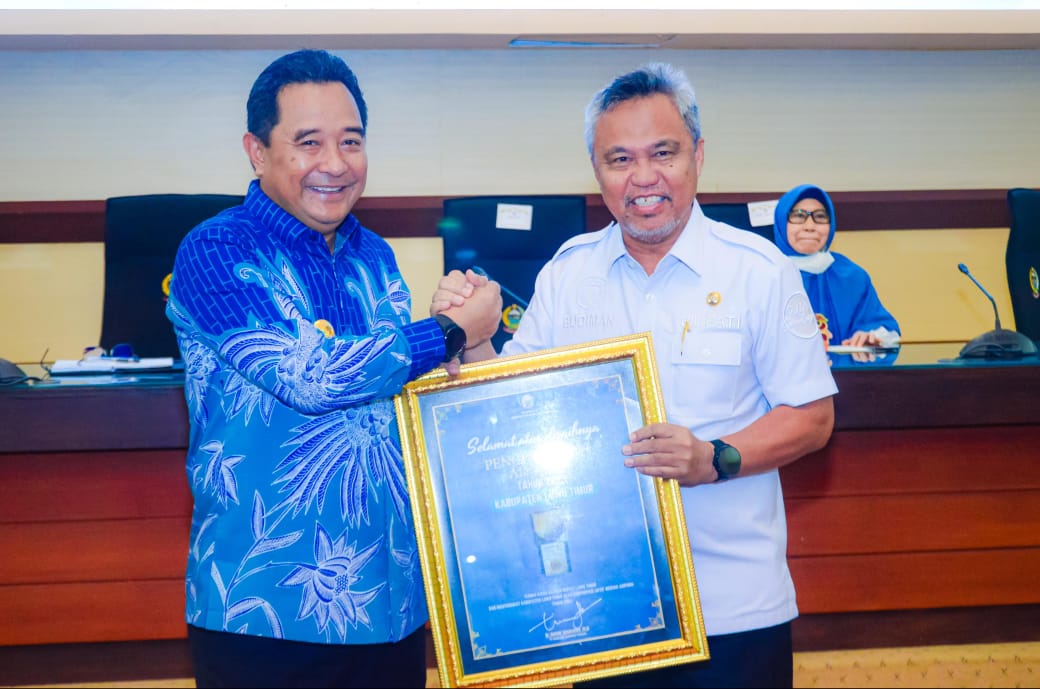 LUWU TIMUR – Bupati Luwu Timur, H. Budiman menerima penghargaan dari Pj. Gubernur Sulawesi Selatan, Bahtiar Baharuddin atas kesuksesan Kabupaten Luwu Timur meraih Penghargaan Adipura Tahun 2023 kategori Kota Kecil.