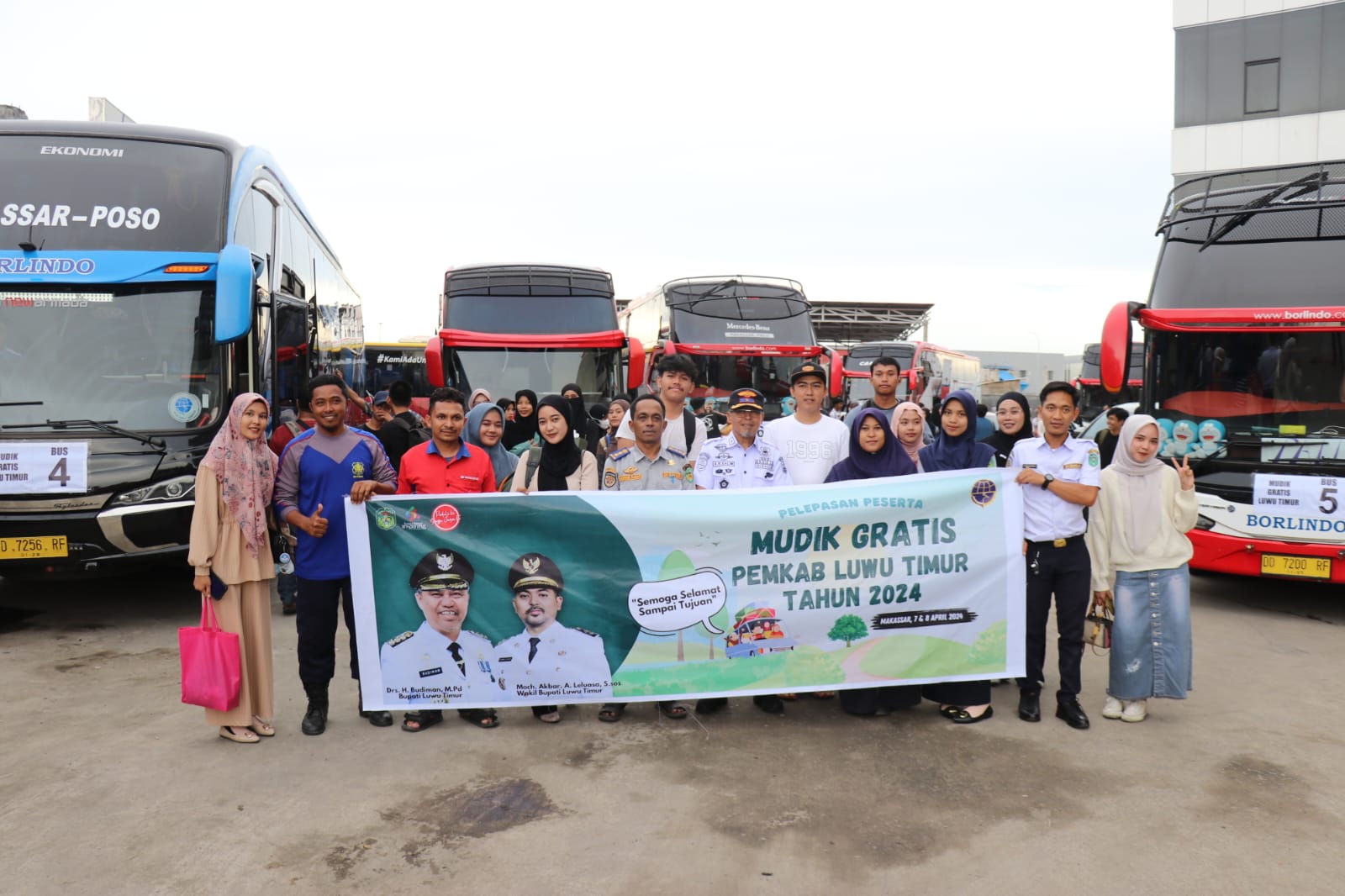 Sebanyak 7 bus dilepas dengan jumlah peserta 291 orang. Pelepasan tersebut dilakukan di Perwakilan Borlindo, Jl. Jalur Lingkar Barat, Tamalanrea Indah, Kecamatan Tamalanrea, Kota Makassar, Senin (08/04/2024).