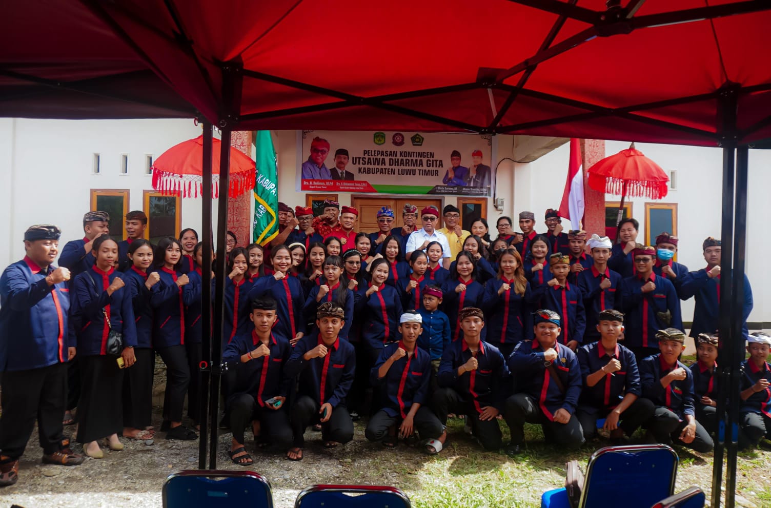 LUWU TIMUR – Bupati Luwu Timur, H. Budiman didampingi Anggota DPRD Luwu Timur, I Made Sariana yang juga sebagai Ketua LPDG Lutim secara resmi melepas kontingen Utsawa Dharma Gita (UDG) Kabupaten Luwu Timur yang akan berlomba pada UDG IX Tingkat Provinsi Sulawesi Selatan Tahun 2024.