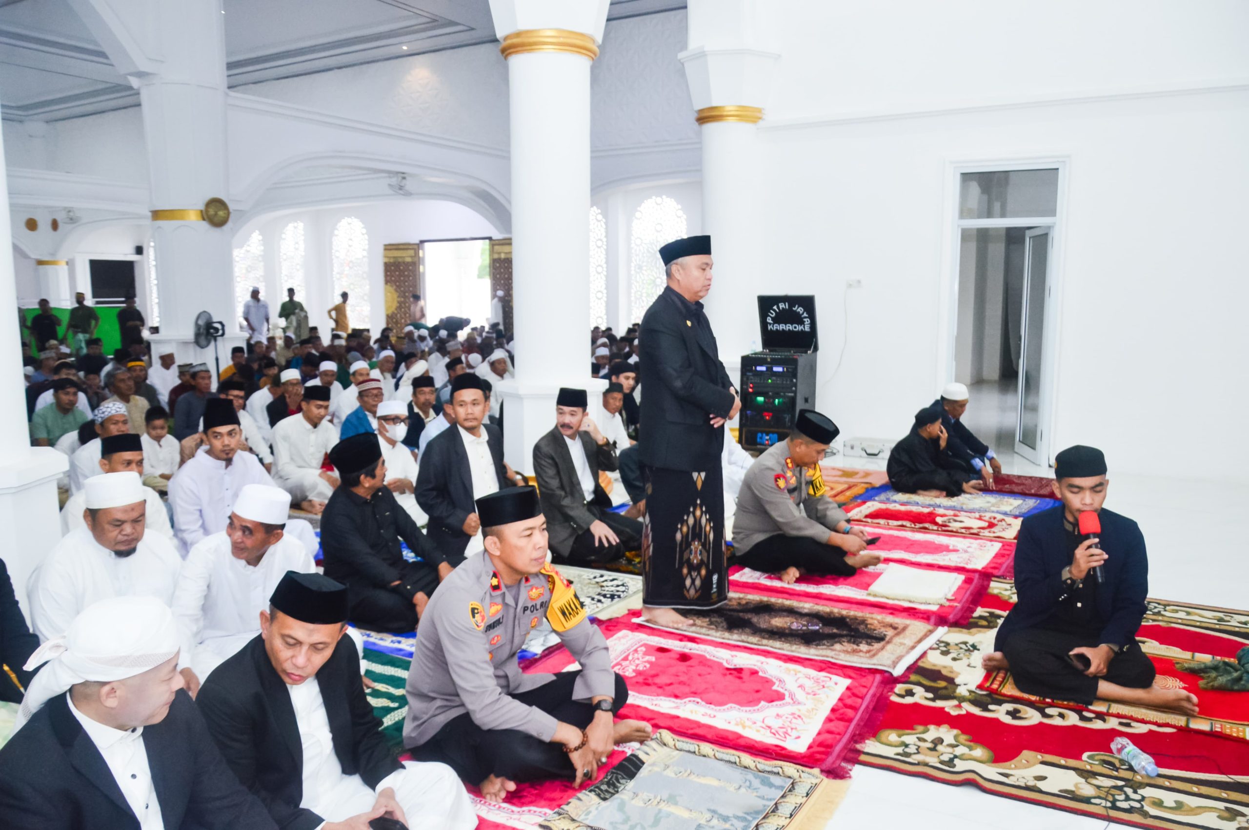 Bupati Luwu Timur, H. Budiman bersama keluarga dan unsur Forum Komunikasi Pimpinan Daerah (Forkopimda) turut serta dalam Shalat Idul Fitri yang diselenggarakan di Masjid Agung Malili, Rabu (10/04/2024).