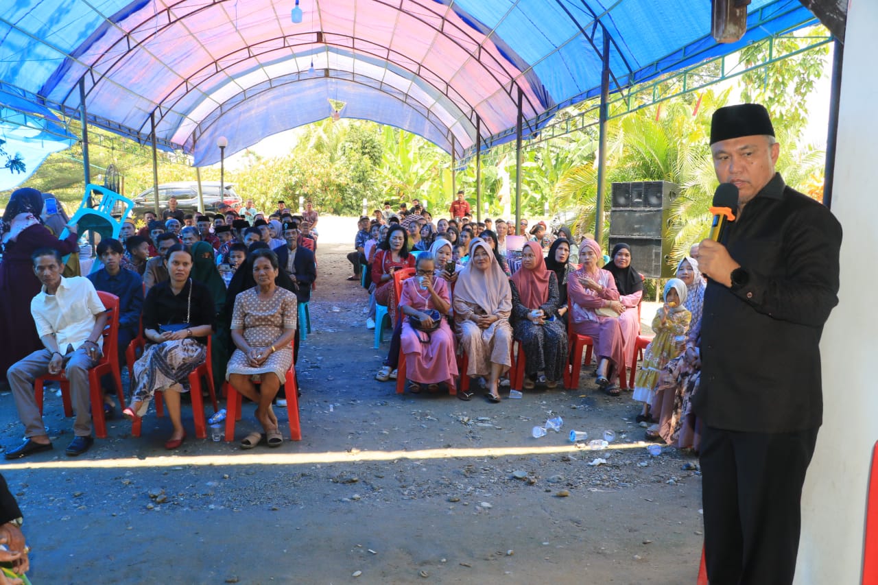 Mengawali sambutannya, H. Budiman menyampaikan ucapan Selamat Hari Raya Idul Fitri 1445 Hijriah kepada seluruh masyarakat Desa Lanosi.