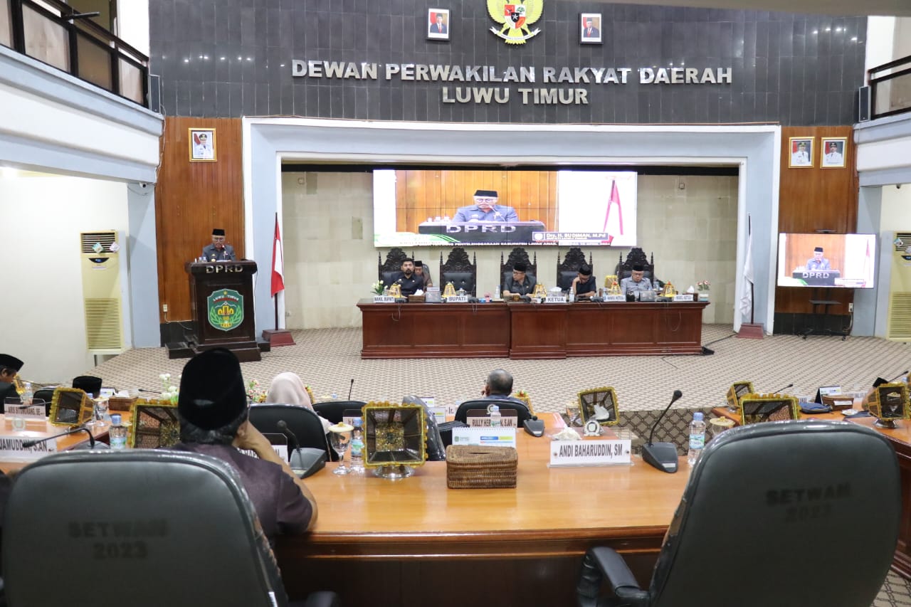Jawaban tersebut disampaikannya dalam sidang paripurna yang dipimpin oleh Ketua DPRD Lutim, Aripin, didampingi Wakil Ketua I dan II DPRD, HM. Siddiq BM. dan H. Usman Sadik, dan dihadiri Wakil Bupati, Moch. Akbar A. Leluasa serta (Dandim) 1403/Palopo, Letkol Armed Kabit Bintoro Priyambodo, Selasa (16/04/2024).