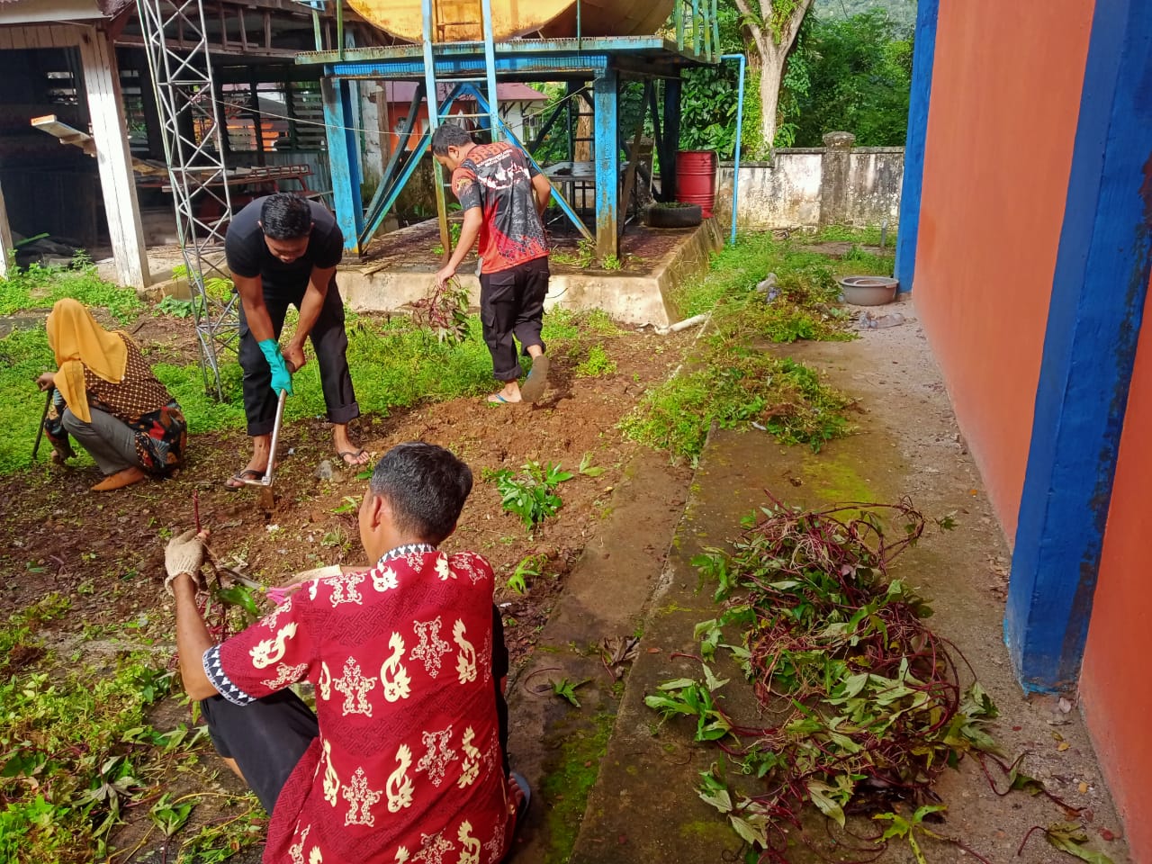 Tim dari BPBD Luwu Timur bergotong-royong membersihkan area sekitar kantor, termasuk pekarangan dan halaman kantor yang terdapat rumput liar. Selain membersihkan, mereka juga melakukan penanaman ubi orange sebagai langkah konkrit untuk memperindah dan menghijaukan lingkungan kantor.