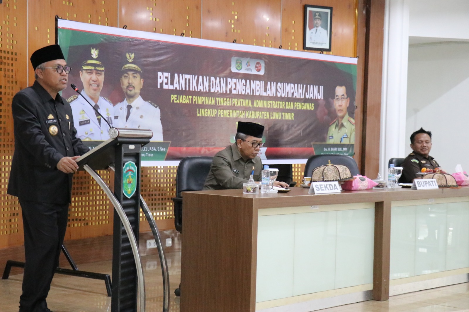 LUWU TIMUR – Sebanyak 14 orang pejabat Pemerintah Kabupaten Luwu Timur dilantik dan diambil sumpahnya oleh Bupati Luwu Timur, H. Budiman, di Aula Rujab Bupati, Rabu (08/05/2024).