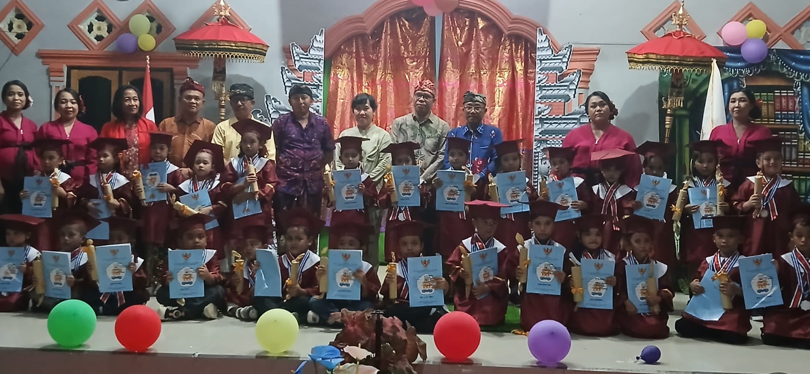 “Dari 24 murid yang tamat, 8 orang diantaranya berasal dari keluarga Toraja yang bersekolah di TK yayasan pendidikan Hindu Batara guru ini, yang menandakan sekolah ini terbuka bagus siap saja” kata Wayan Silayasa.
