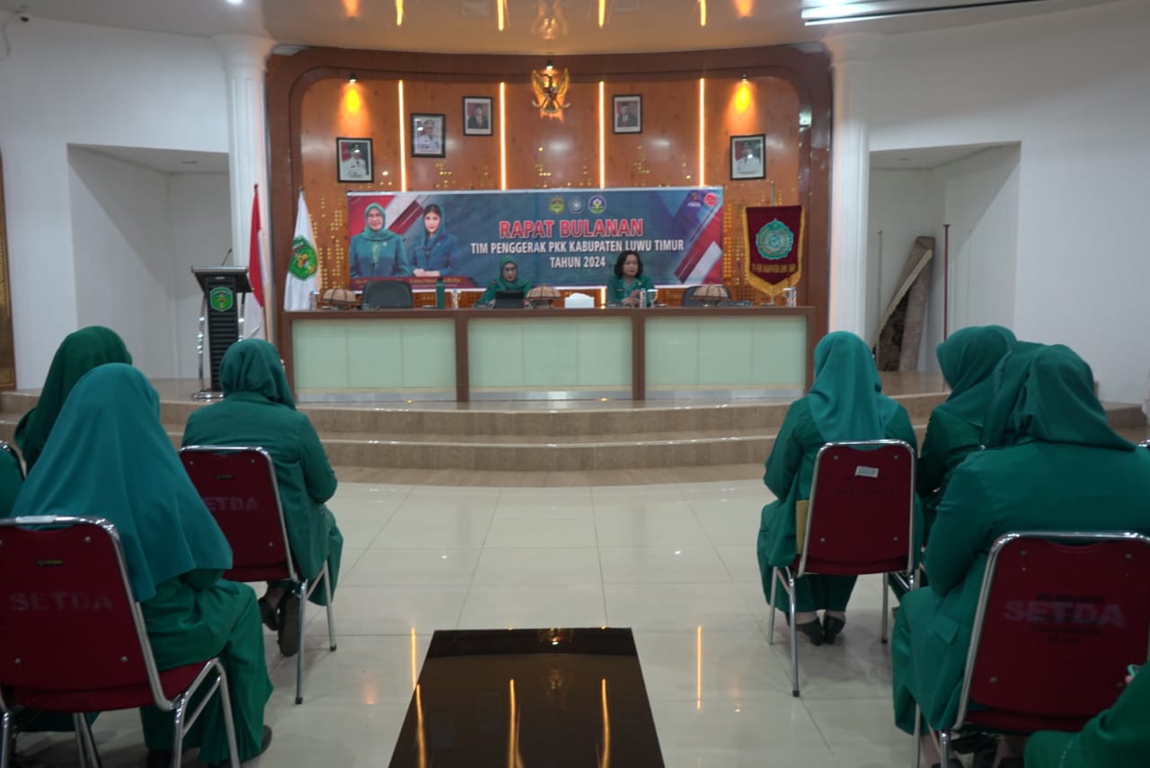 LUWU TIMUR – Ketua Tim Penggerak Pemberdayaan Kesejahteraan Keluarga (TP PKK) Kabupaten Luwu Timur, Hj. Sufriaty Budiman didampingi Ketua Bidang II Peningkatan Ekonomi Keluarga, Relince Miri, memimpin langsung Rapat bulanan TP-PKK Lutim sekaligus menghadiri pelantikan Ketua TP-PKK Provinsi Sulawesi Selatan secara daring melalui Zoom meeting di Aula Rujab Bupati, Senin (27/05/2024).