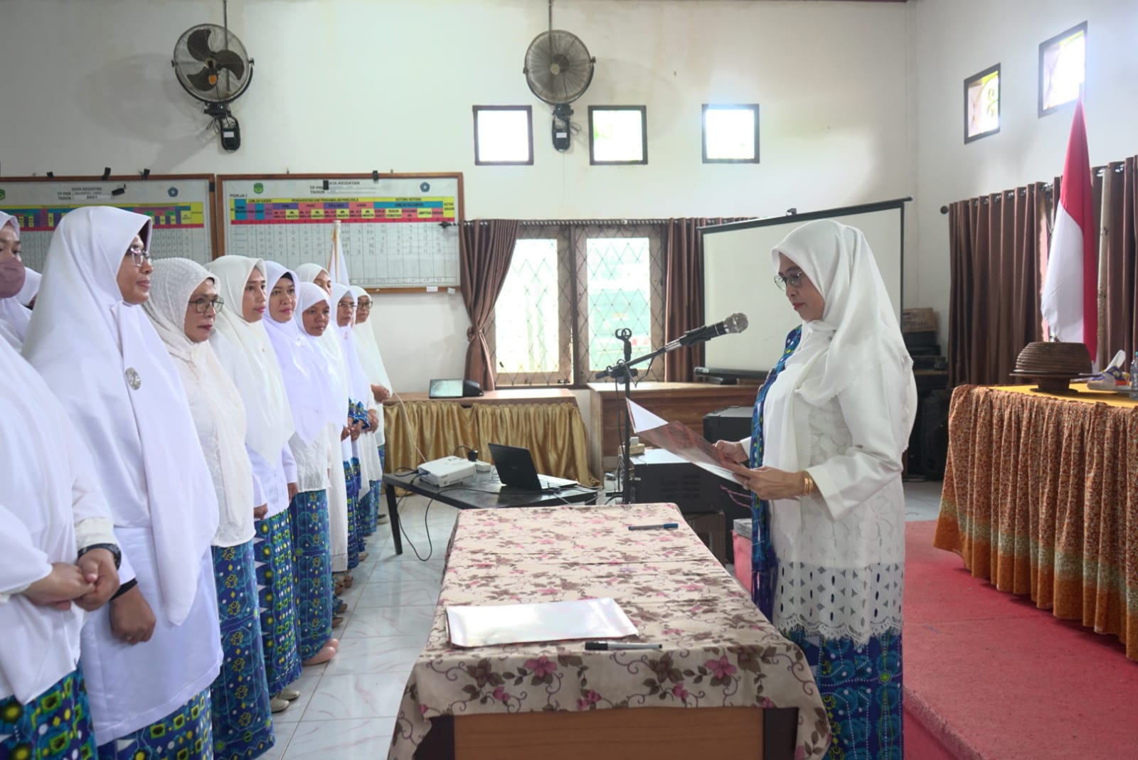 LUWU TIMUR – Ketua Pengurus Daerah Badan Kontak Majelis Taqlim (BKMT) Kabupaten Luwu Timur, Hj. Sufriaty Budiman didampingi Sekretaris BKMT, Andi Besse Ahmad, melantik Pengurus Cabang (PC) BKMT Kecamatan Nuha sekaligus Pelantikan Pengurus Permata (PP) BKMT Desa Nikkel dan Desa Sorowako dengan Masa Bakti 2024-2029, di Aula Kecamatan Nuha, Selasa (28/05/2024).