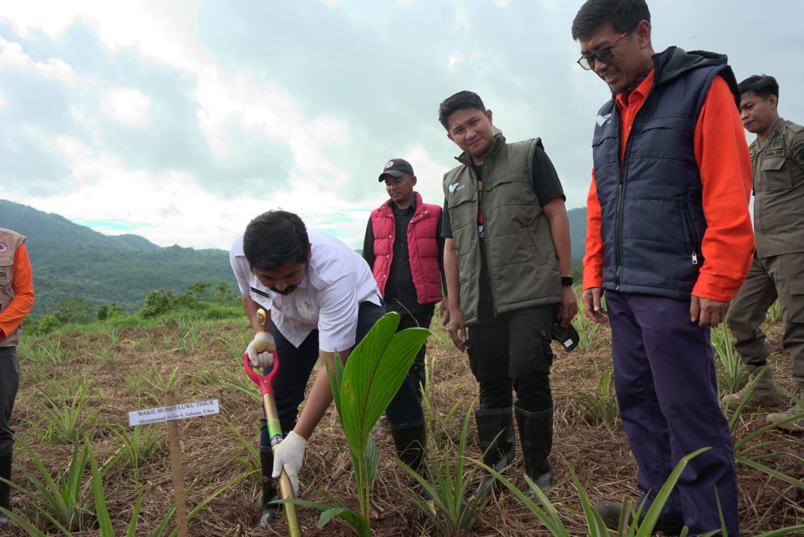 Diakhir Kegiatan, Wakil Bupati Lutim beserta rombongannya dan pihak management PT. Vale melanjutkan aksi tanam pohon kelapa serentak di wilayah perkebunan nanas yang terletak di desa Tabarano. (res/ikp-humas/kominfo-sp)