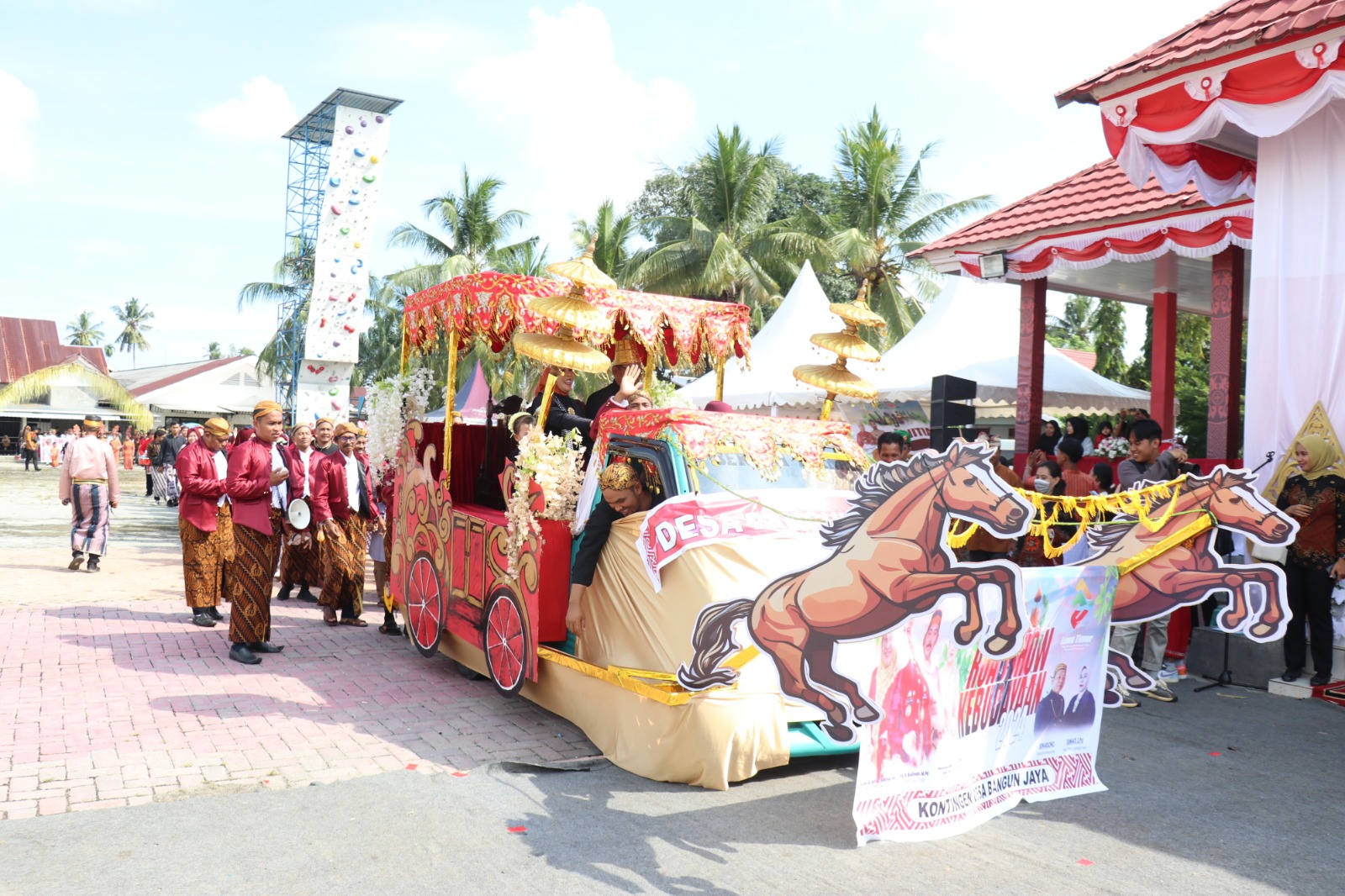 Desa Bangun Jaya tampil memukau dalam devile dengan membawa tema budaya Jawa. Para peserta mengenakan kostum tradisional Jawa seperti kebaya, blangkon, dan batik yang mencerminkan keanggunan dan kekayaan budaya Jawa.