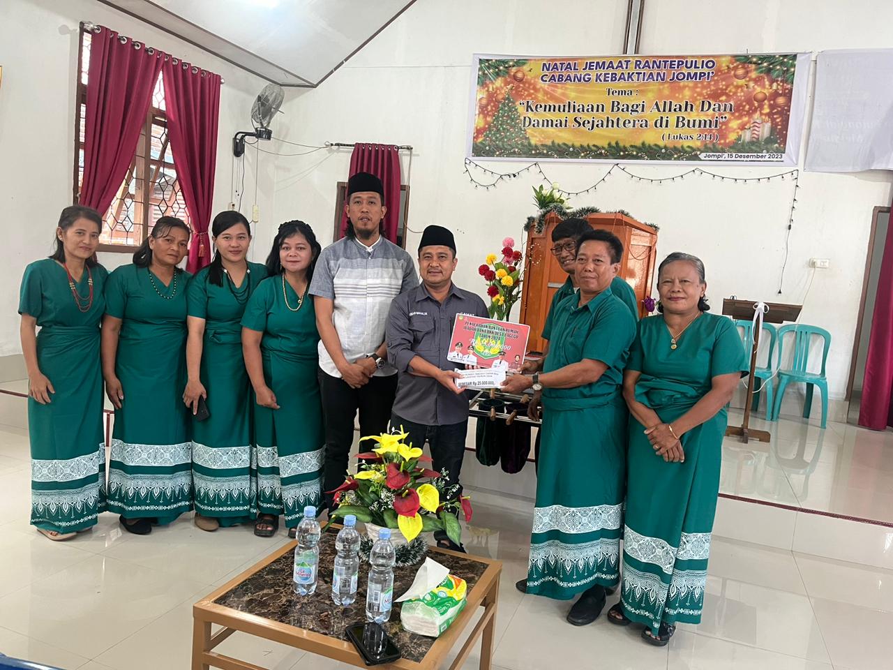 Penyerahan bantuan dilakukan langsung oleh Camat Burau, Akbar Bahar, yang didampingi oleh Kepala Desa Lagego, Akbar Husair, yang diterima oleh majelis jemaat Gereja Toraja Jompi diwakili oleh Andarias. Acara penyerahan berlangsung di Gereja Toraja Jemaat Rantepulio, Cabang Kebaktian Jompi, Desa Lagego, Kecamatan Burau.